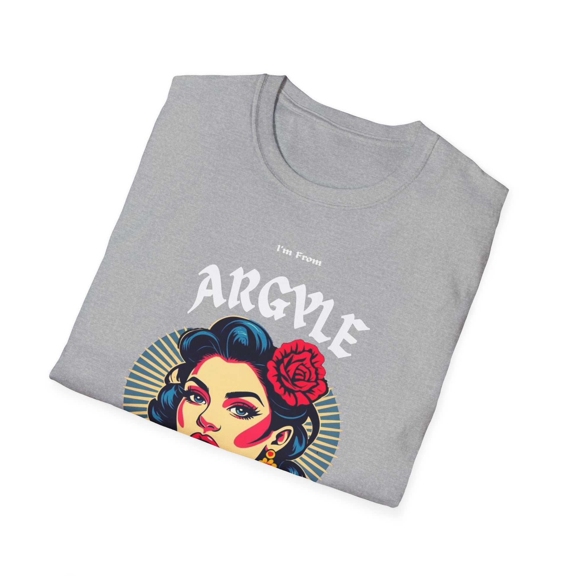Argyle Underestimate Gal T-Shirt, c02-n01-s001 Softstyle Graphic Tee, Unisex Casual Wear, Support'n Locals Merch, Gift for Community Lovers.