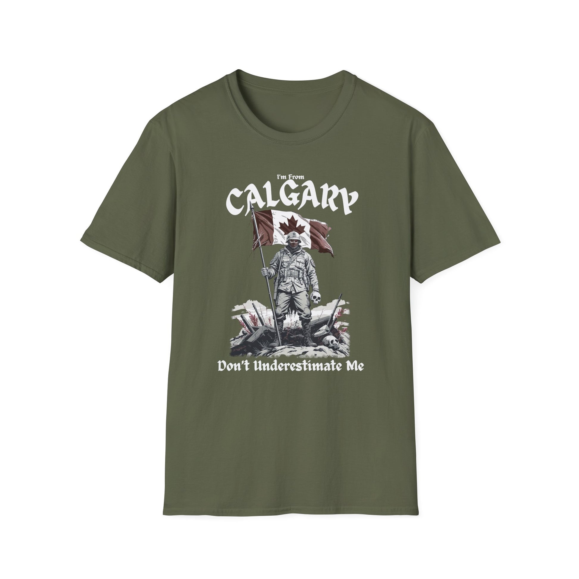 Calgary Underestimate Guy T-Shirt, c11-n00-s002 Softstyle Graphic Tee, Unisex Casual Wear, Support'n Locals Merch, Gift for Community Lovers.