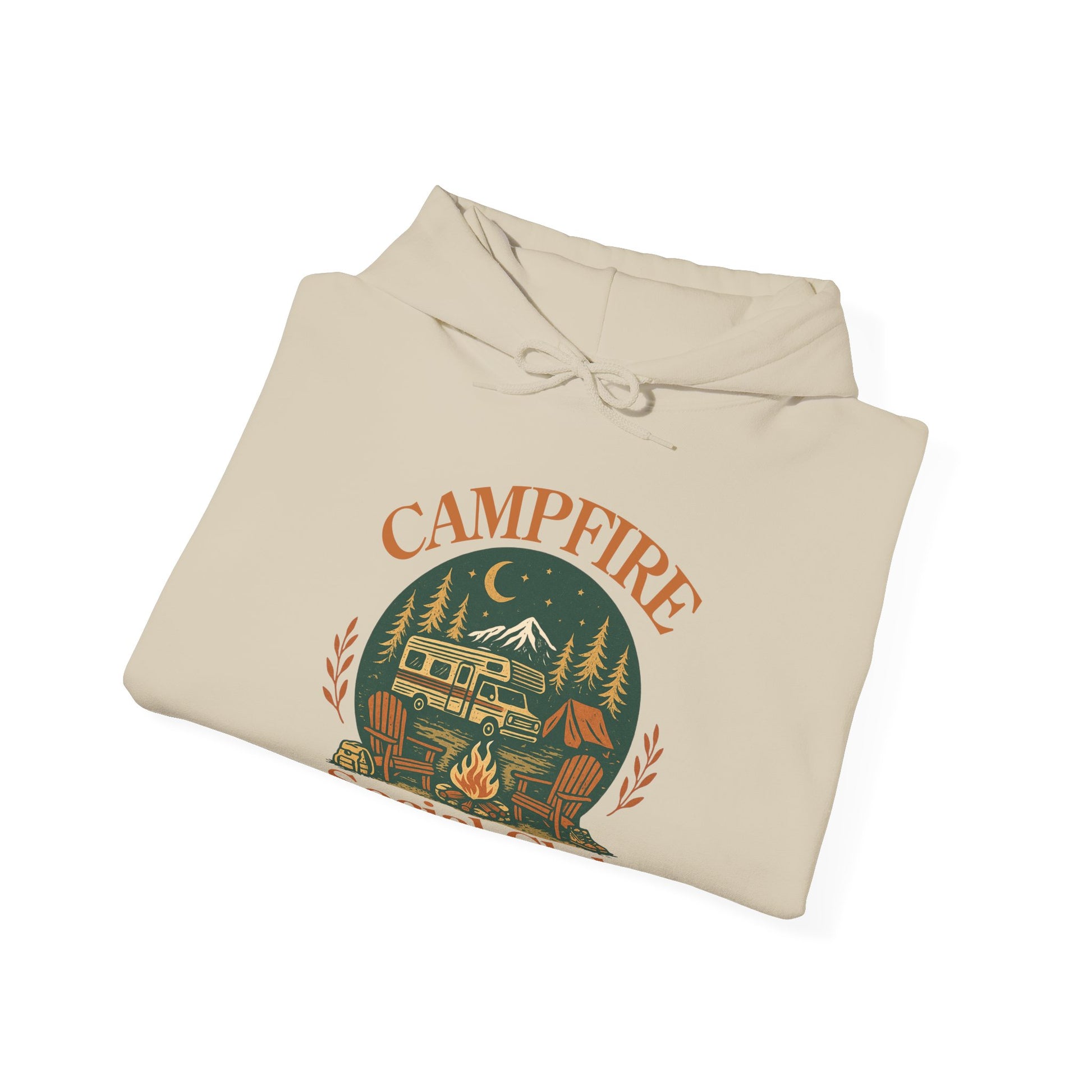 Campfire Social Club Hoodie | HappyCamperCrew.Com 100% Authentic | Cozy Camping Hoodie | Unisex Hooded Sweatshirt for Nature Lovers, Casual Wear, Gift for Him/Her, Outdoor Adventures, Cozy Days & Warm Nights By The Campfire
