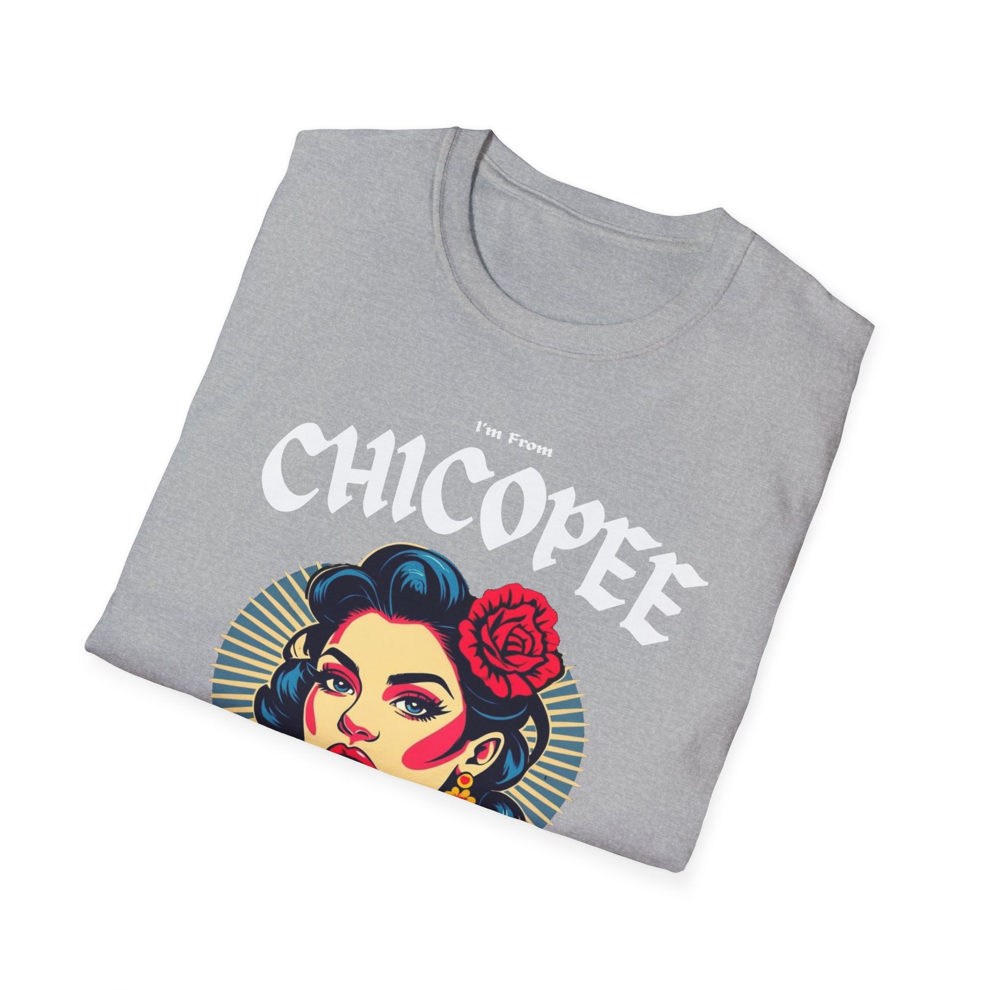 Chicopee Underestimate Gal T-Shirt, c03-n01-s001 Softstyle Graphic Tee, Unisex Casual Wear, Support'n Locals Merch, Gift for Community Lovers.