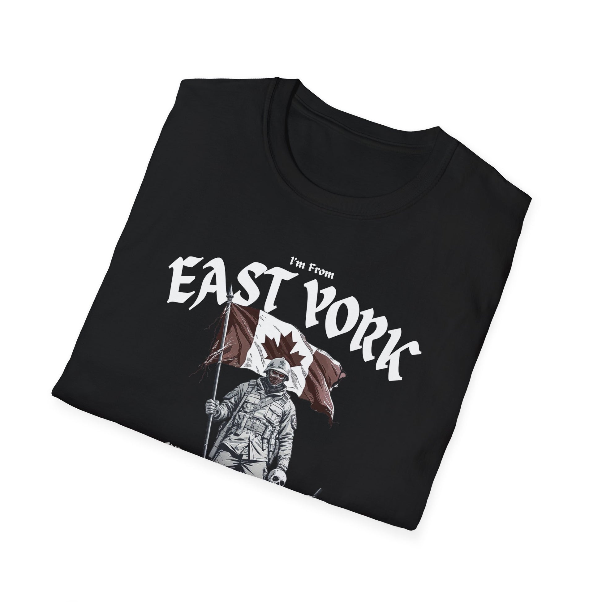 East York Underestimate Guy T-Shirt, c06-n02-s002 Softstyle Graphic Tee, Unisex Casual Wear, Support'n Locals Merch, Gift for Community Lovers.