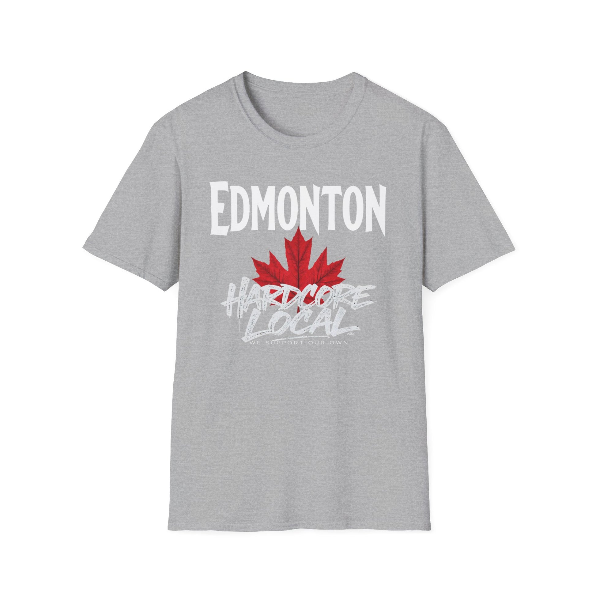 Edmonton Hardcore We Support Our Own Red Leaf T-Shirt, c12-n00-s006 Softstyle Graphic Tee, Unisex Casual Wear, Support'n Locals Merch, Gift for Community Lovers.