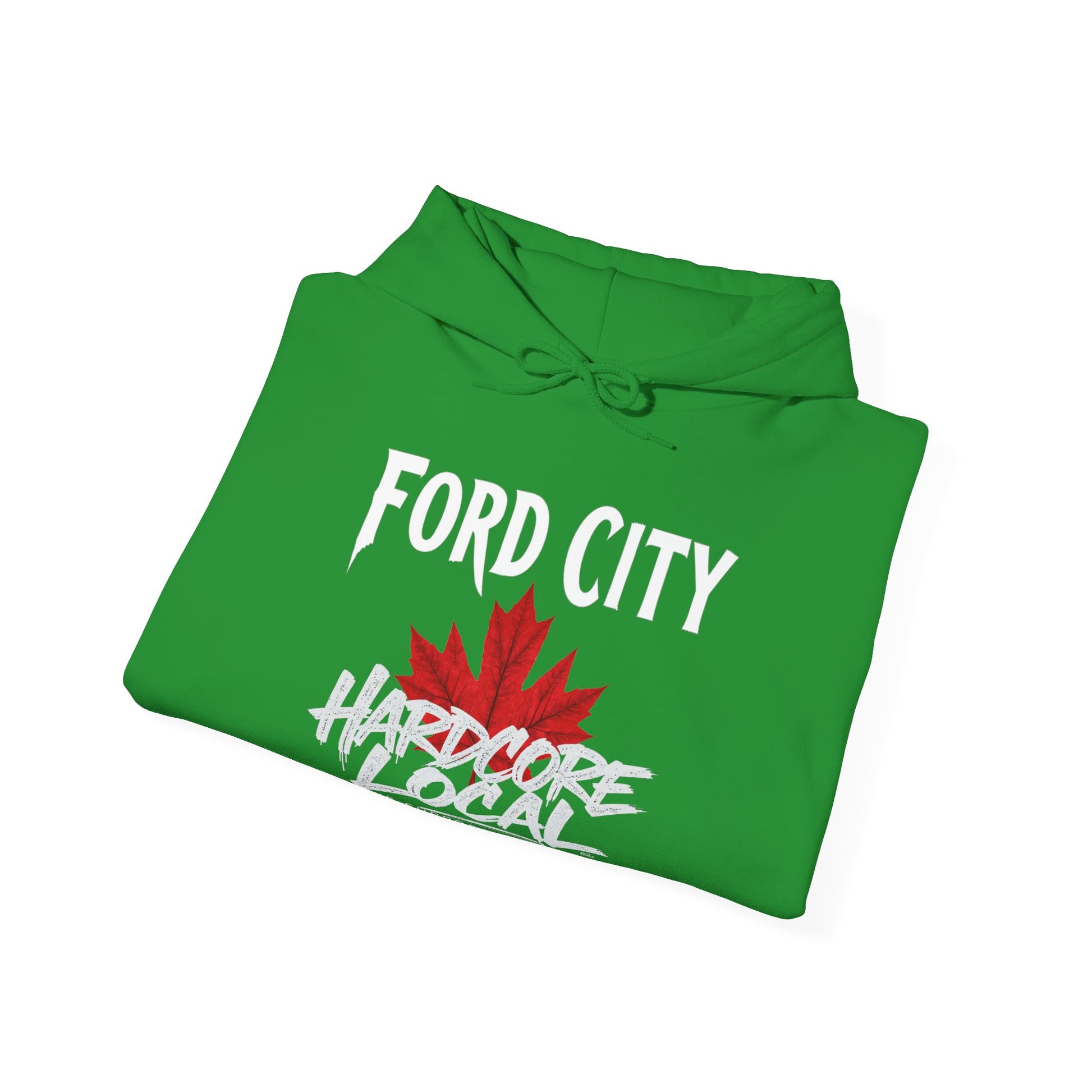 Ford City HARDCORE LOCAL red leaf, Hooded Sweatshirt - c01-n14-hs006 Unisex Heavy Blend™ Pullover, Casual Hoodie for Every Day, Gift for Friends, Support'n Locals -Local Pride Apparel Support Your Community