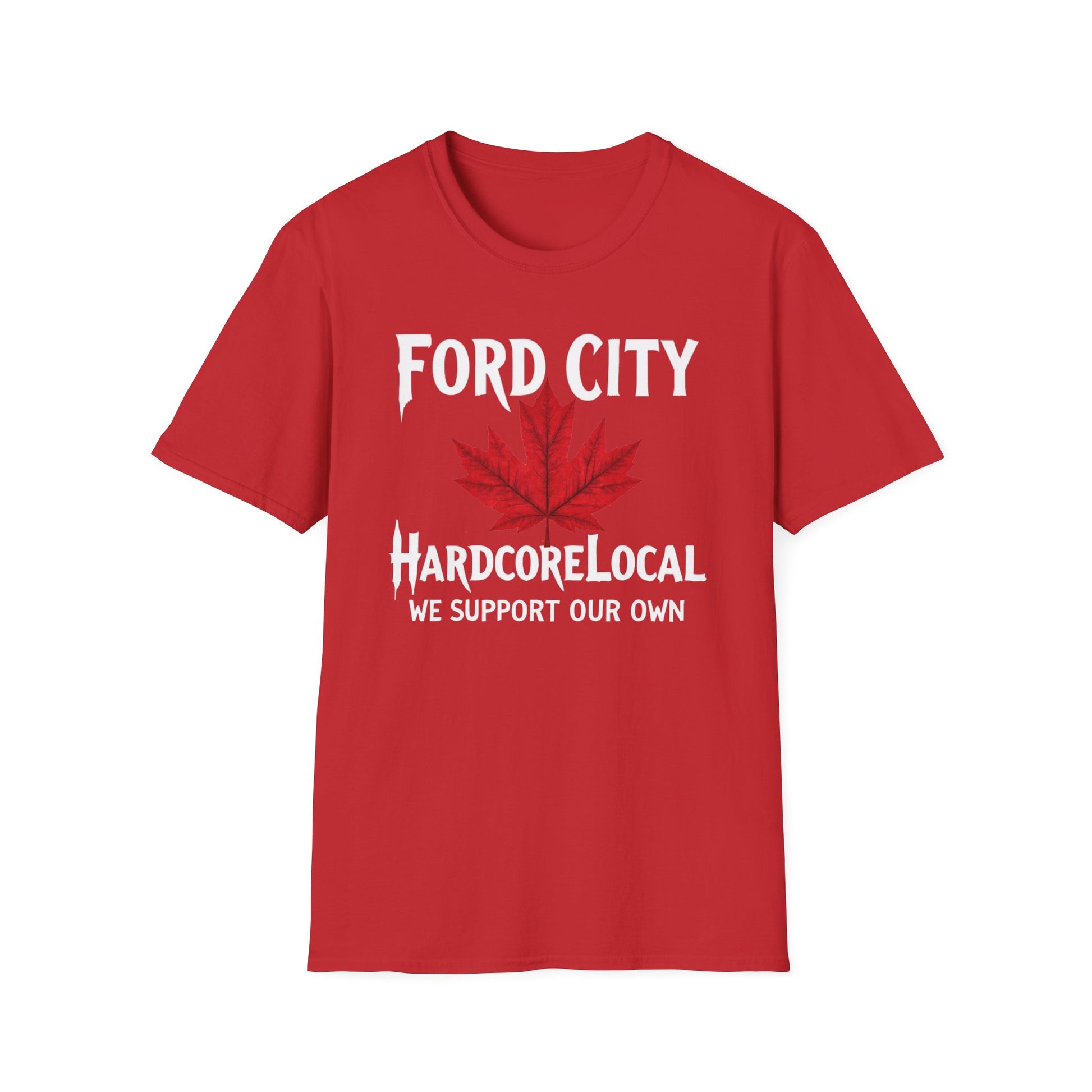 Ford City Hardcore Local Red Leaf, We Support Our Own, 1 T-Shirt, Softstyle Graphic Tee, Unisex Casual Wear, Support Local Merch, Gift for Community Lovers