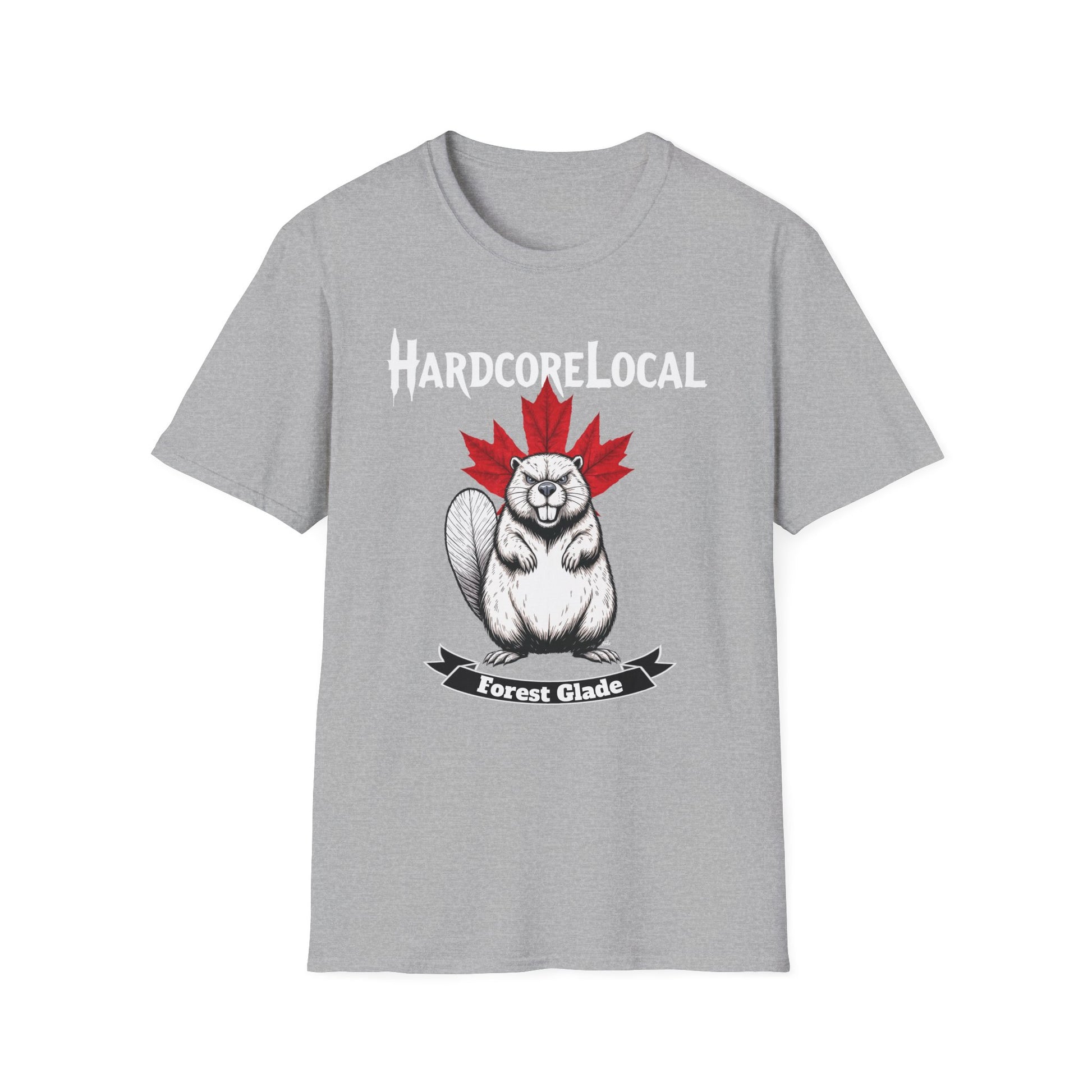 FOREST GLADE +BACK Hardcore Local beaver, red leaf T-Shirt, Softstyle Graphic Tee, Unisex Casual Wear, Support Local Merch, Gift for Community Lovers