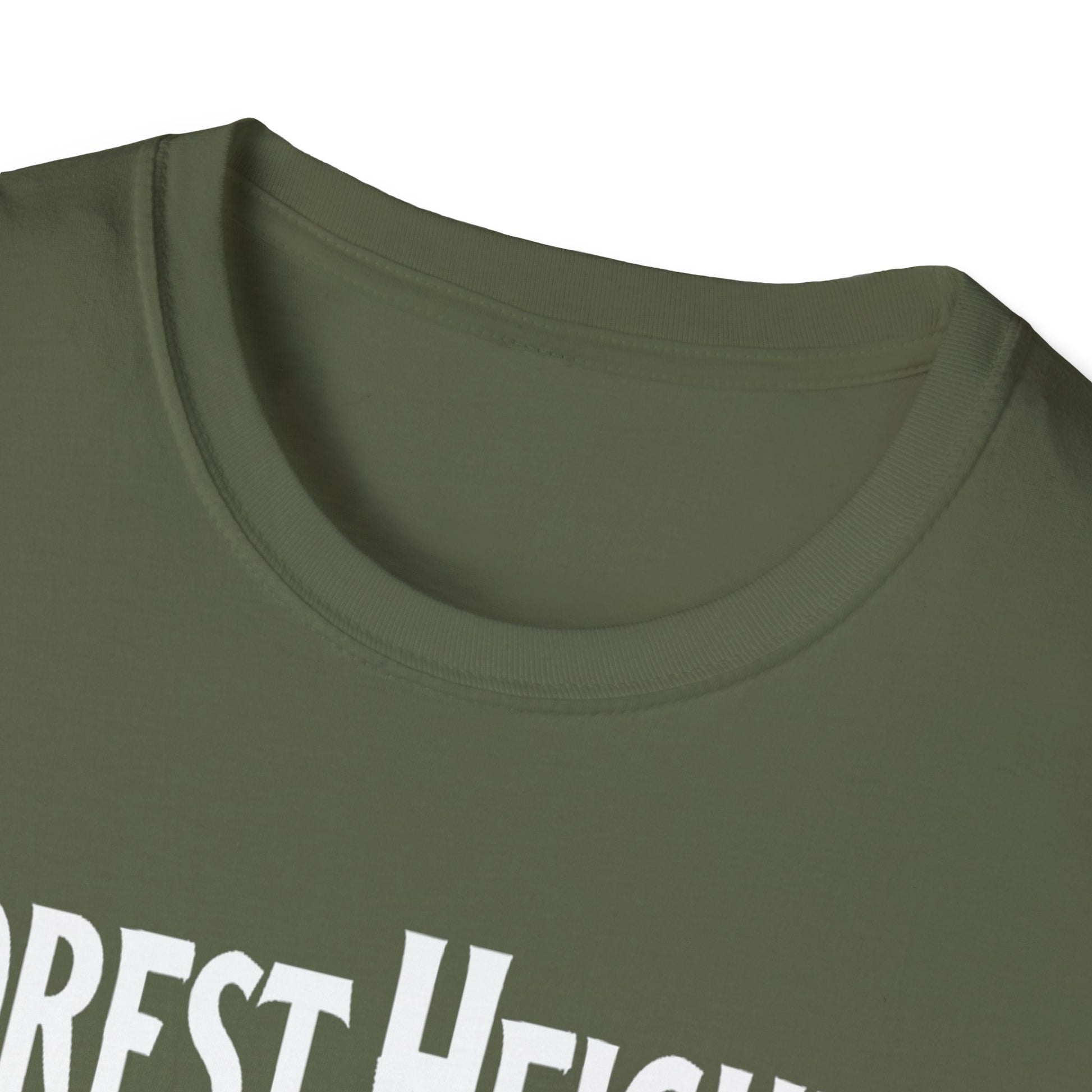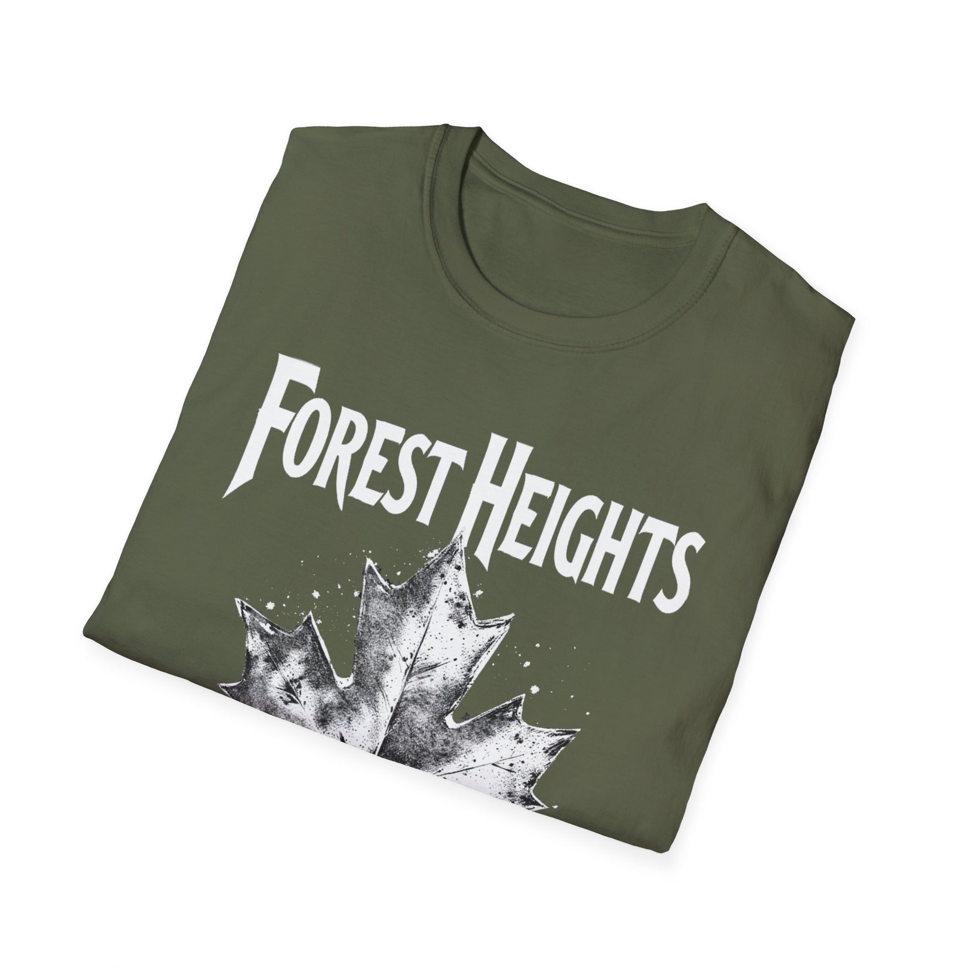 Forest Heights Hardcore Rep'n White Leaf T-Shirt, c03-n03-s007 Softstyle Graphic Tee, Unisex Casual Wear, Support'n Locals Merch, Gift for Community Lovers.