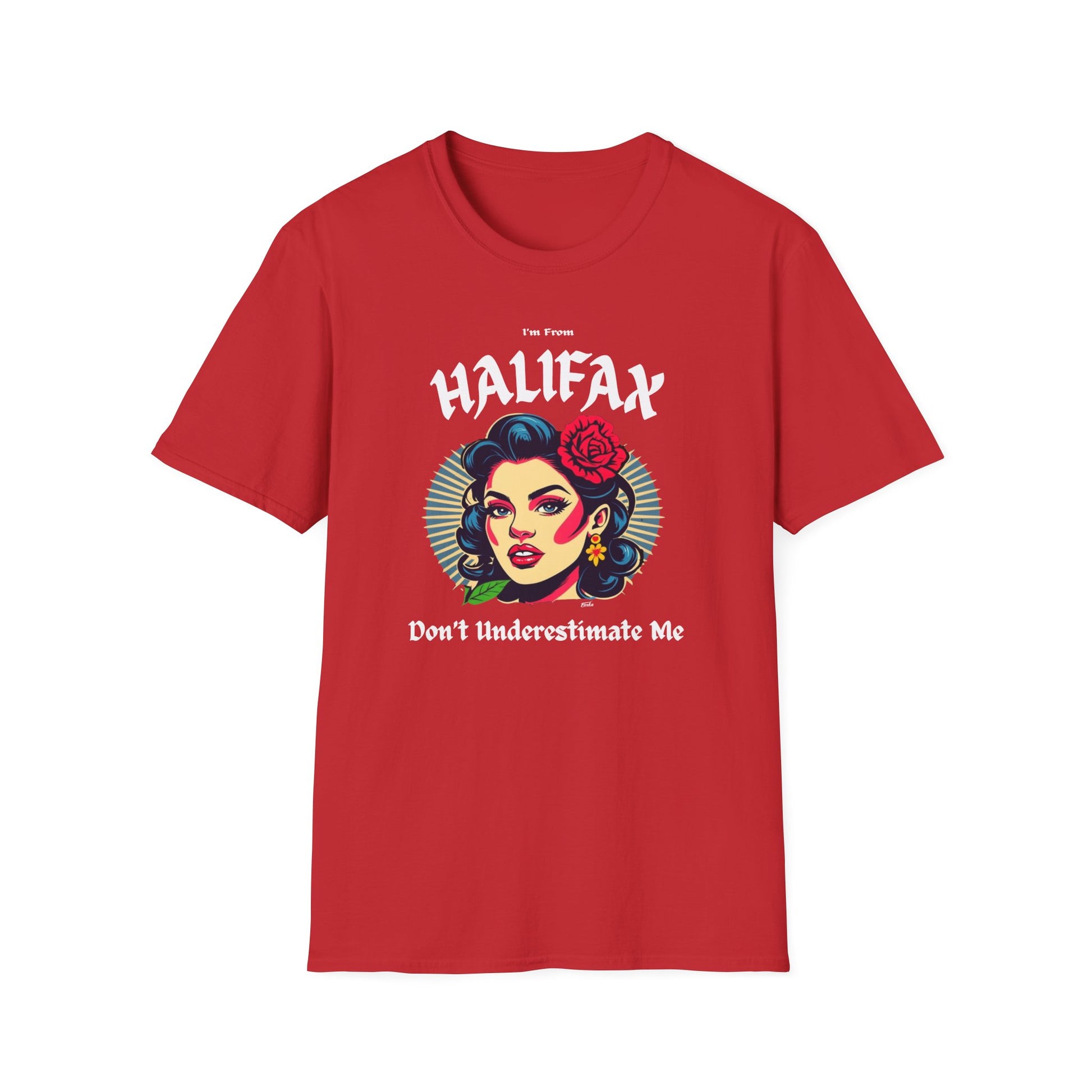 Halifax Underestimate Gal T-Shirt, c008-n00-s001 Softstyle Graphic Tee, Unisex Casual Wear, Support'n Locals Merch, Gift for Community Lovers.