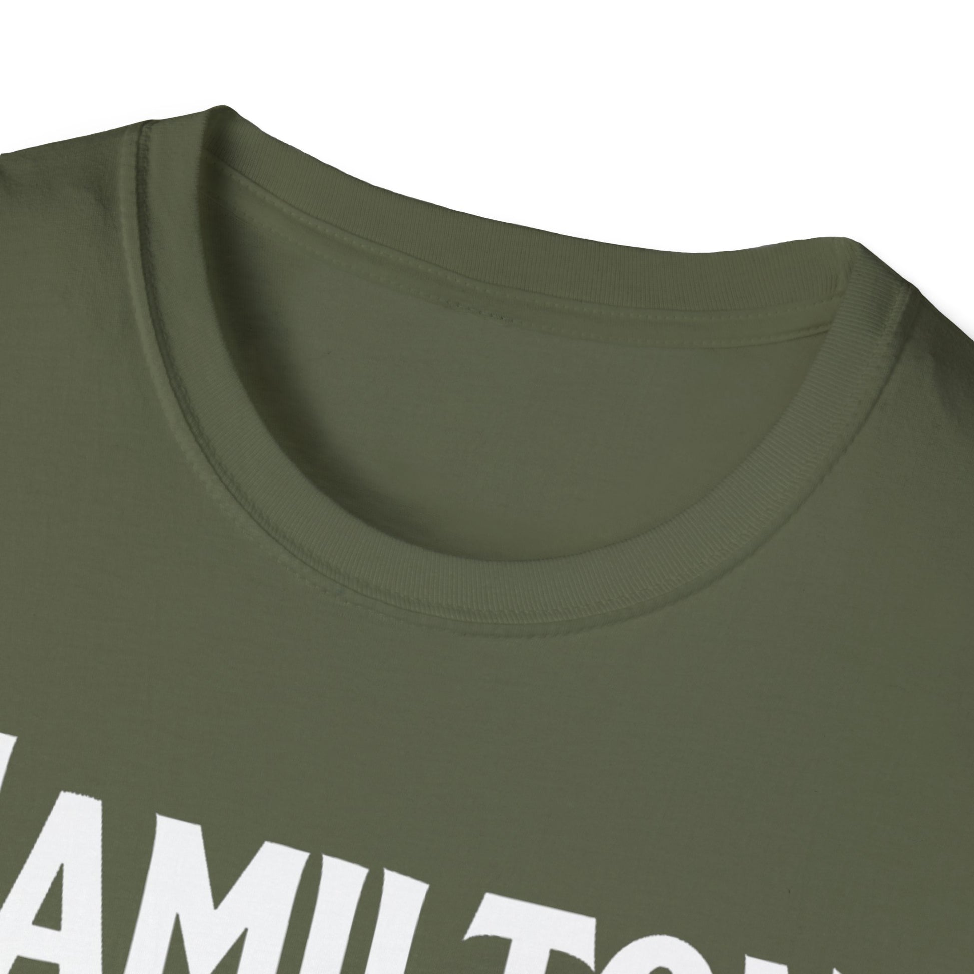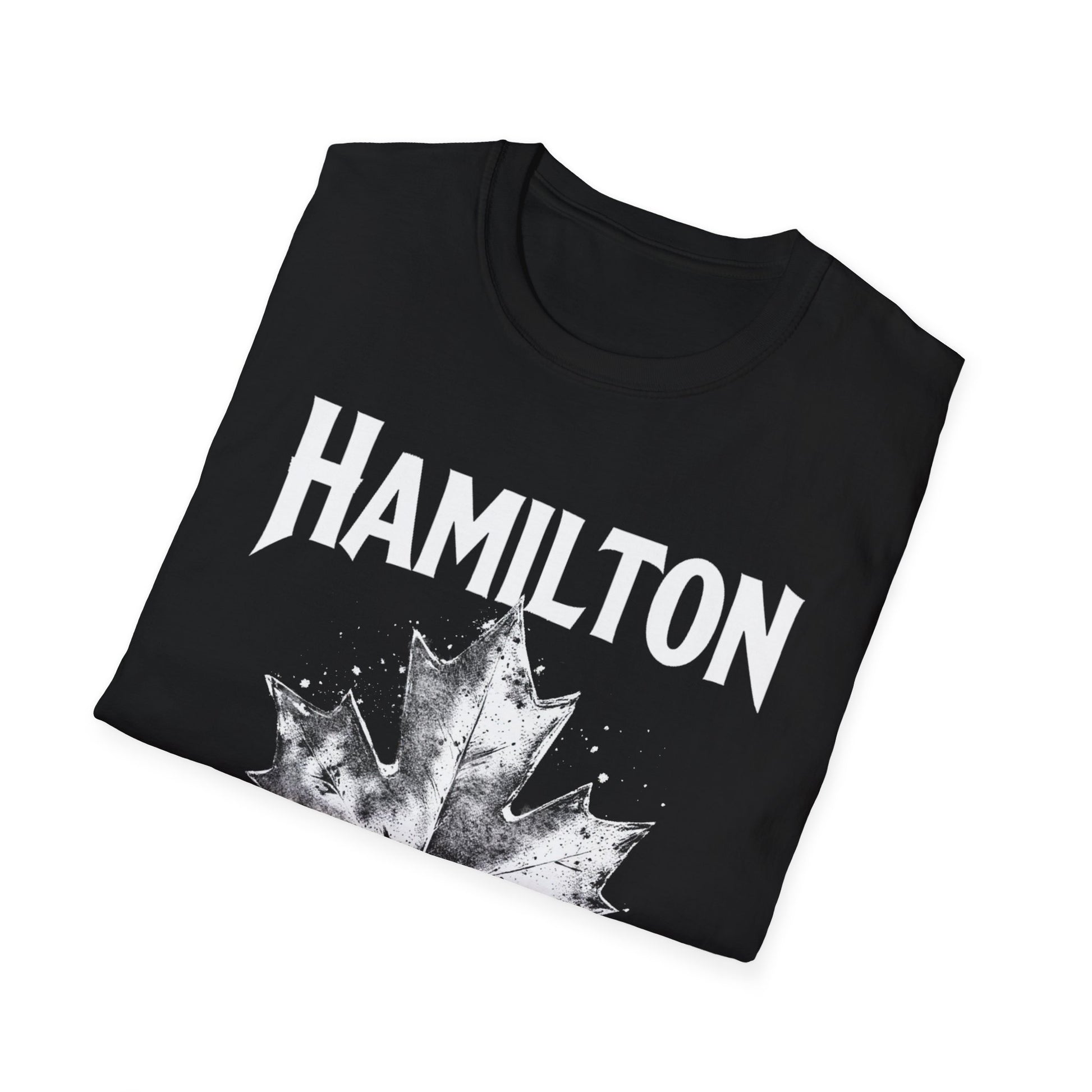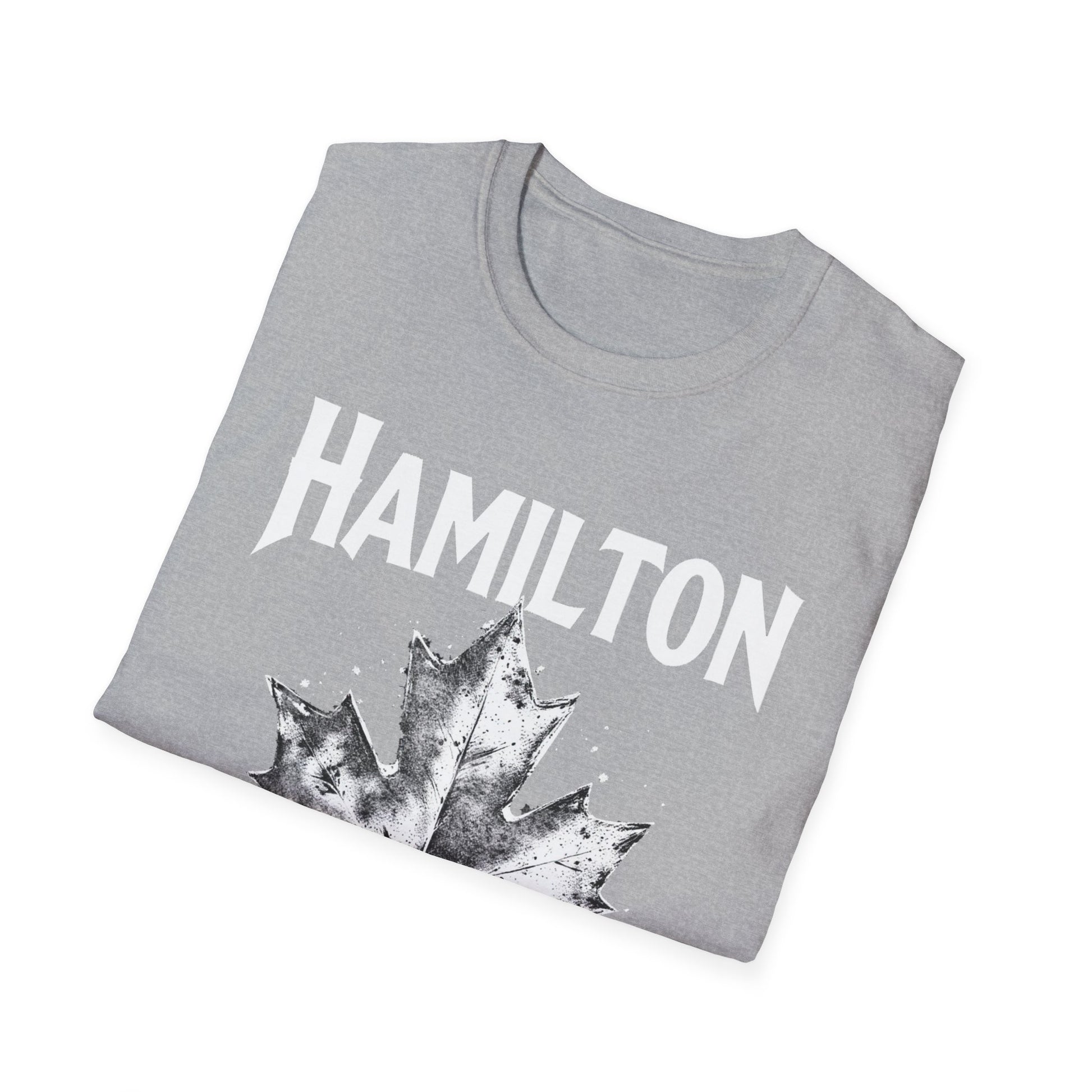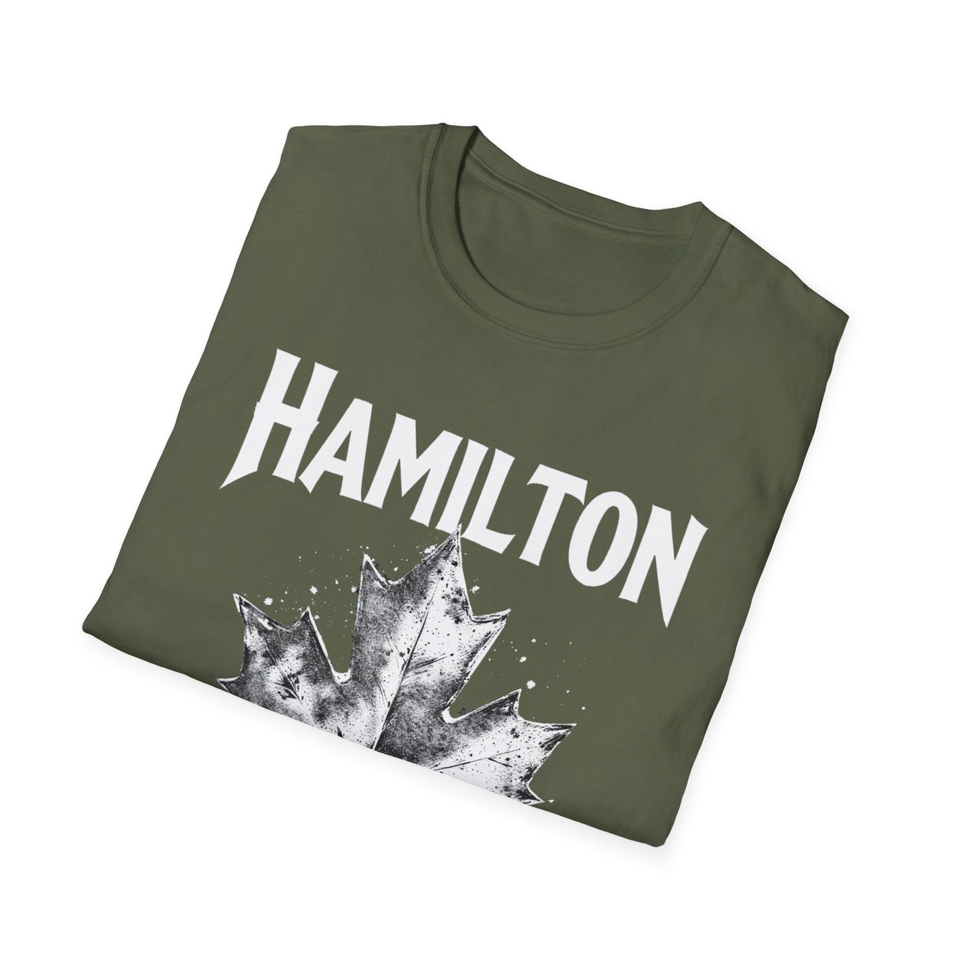 Hamilton Hardcore Rep'n White Leaf T-Shirt, c004-n00-s007 Softstyle Graphic Tee, Unisex Casual Wear, Support'n Locals Merch, Gift for Community Lovers.