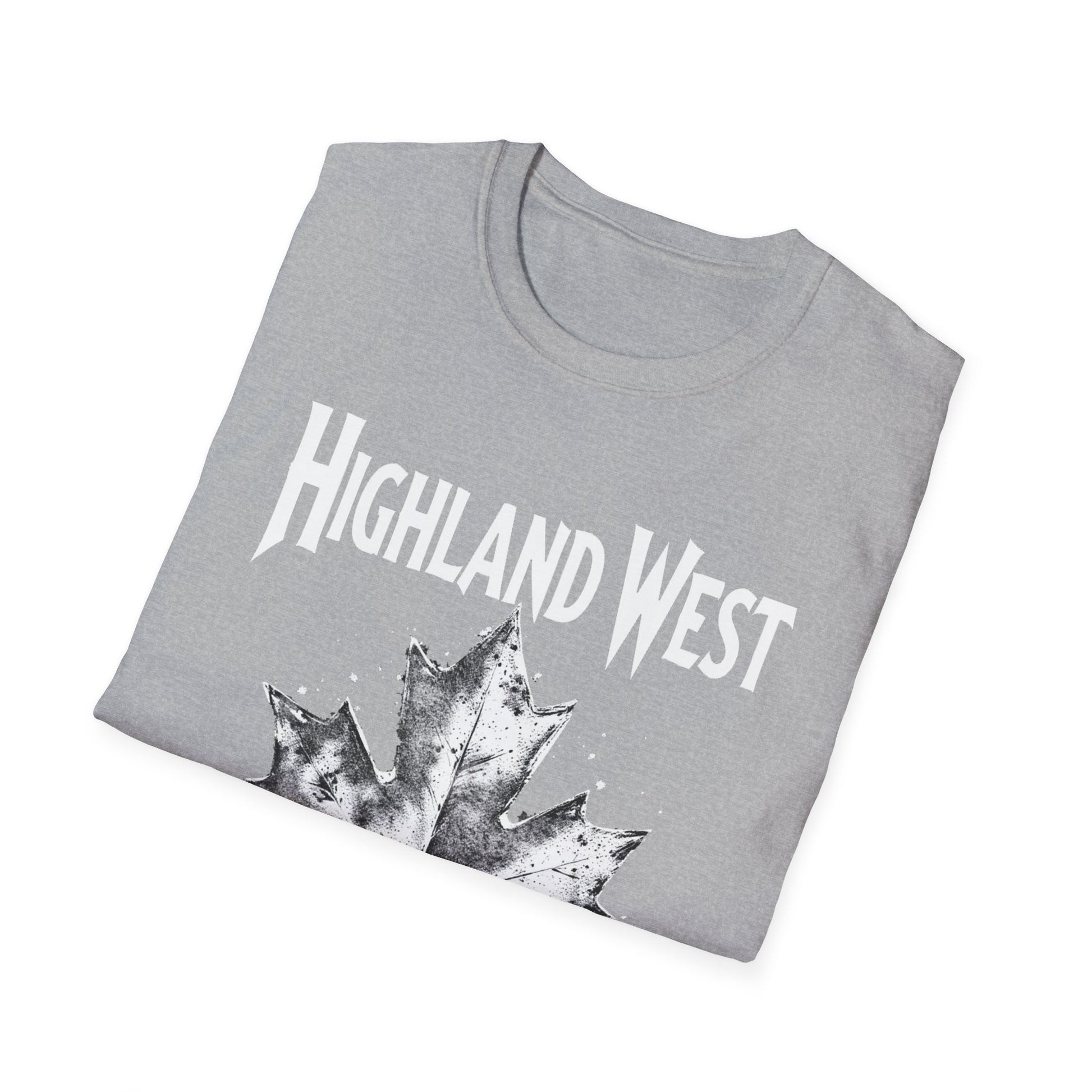 Highland West Hardcore Rep'n White Leaf T-Shirt, c03-n05-s007 Softstyle Graphic Tee, Unisex Casual Wear, Support'n Locals Merch, Gift for Community Lovers.