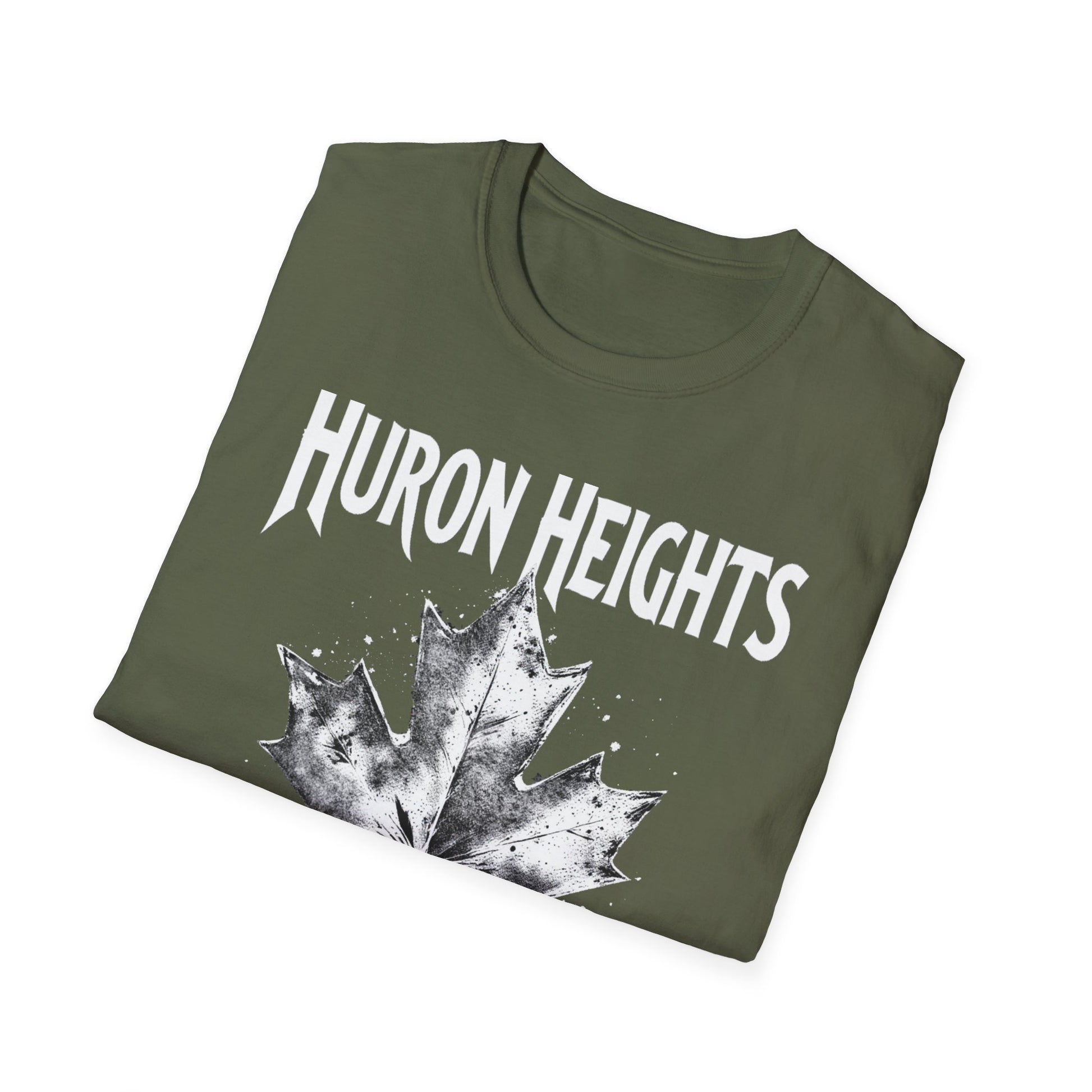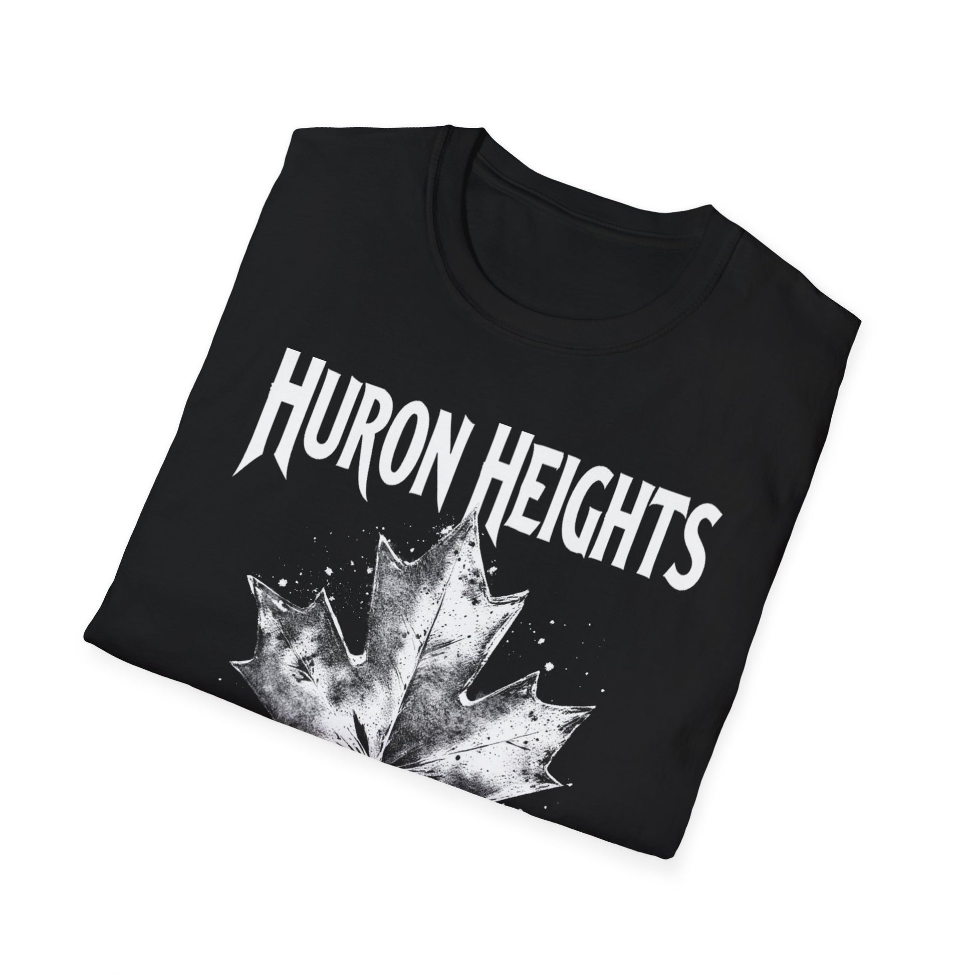 Huron Heights Hardcore Rep'n White Leaf T-Shirt, c002-n06-s007 Softstyle Graphic Tee, Unisex Casual Wear, Support'n Locals Merch, Gift for Community Lovers.