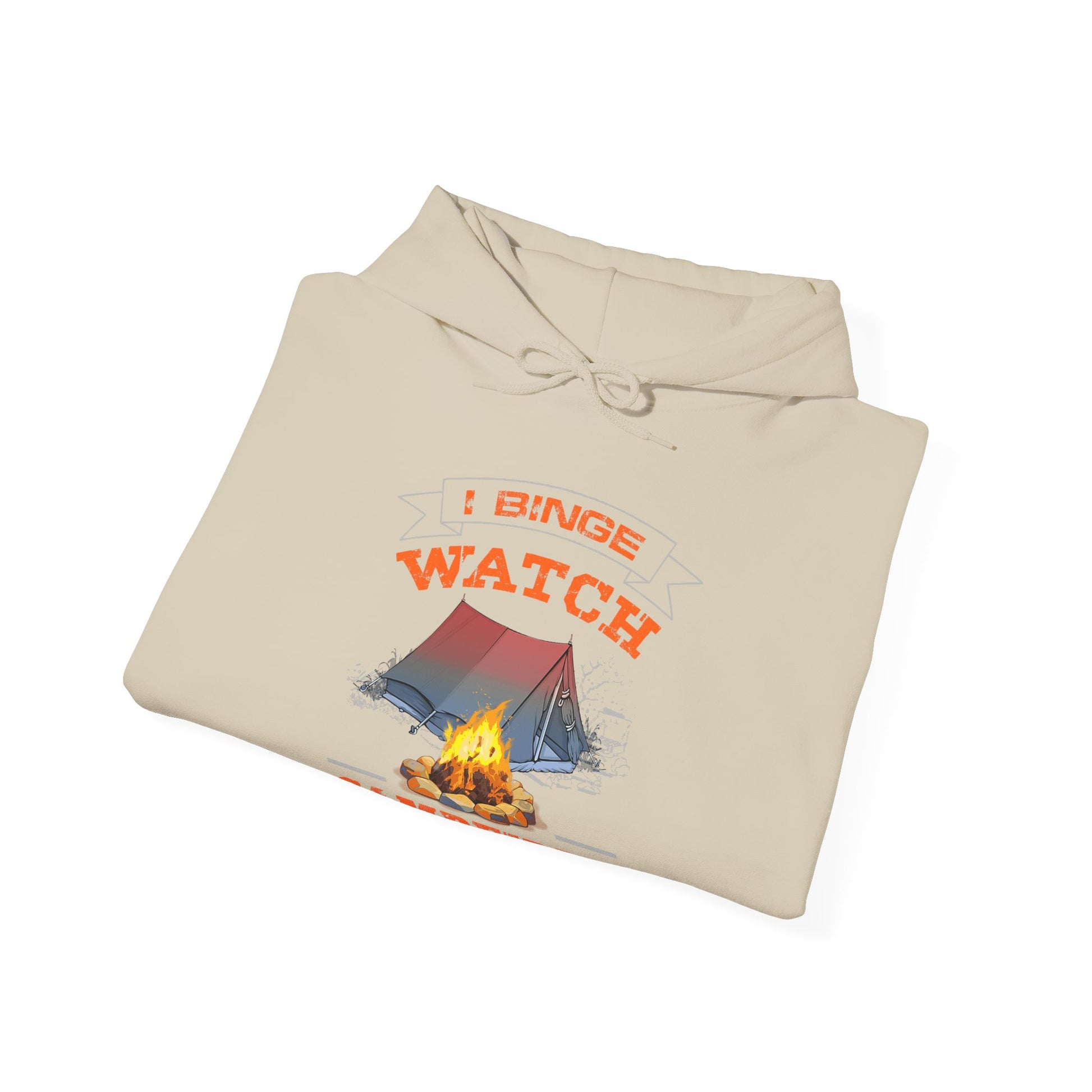 I Binge Watch Campfires Hoodie | HappyCamperCrew.Com 100% Authentic | Cozy Camping Hoodie | Unisex Hooded Sweatshirt for Nature Lovers, Casual Wear, Gift for Him/Her, Outdoor Adventures, Cozy Days & Warm Nights by the Campfire