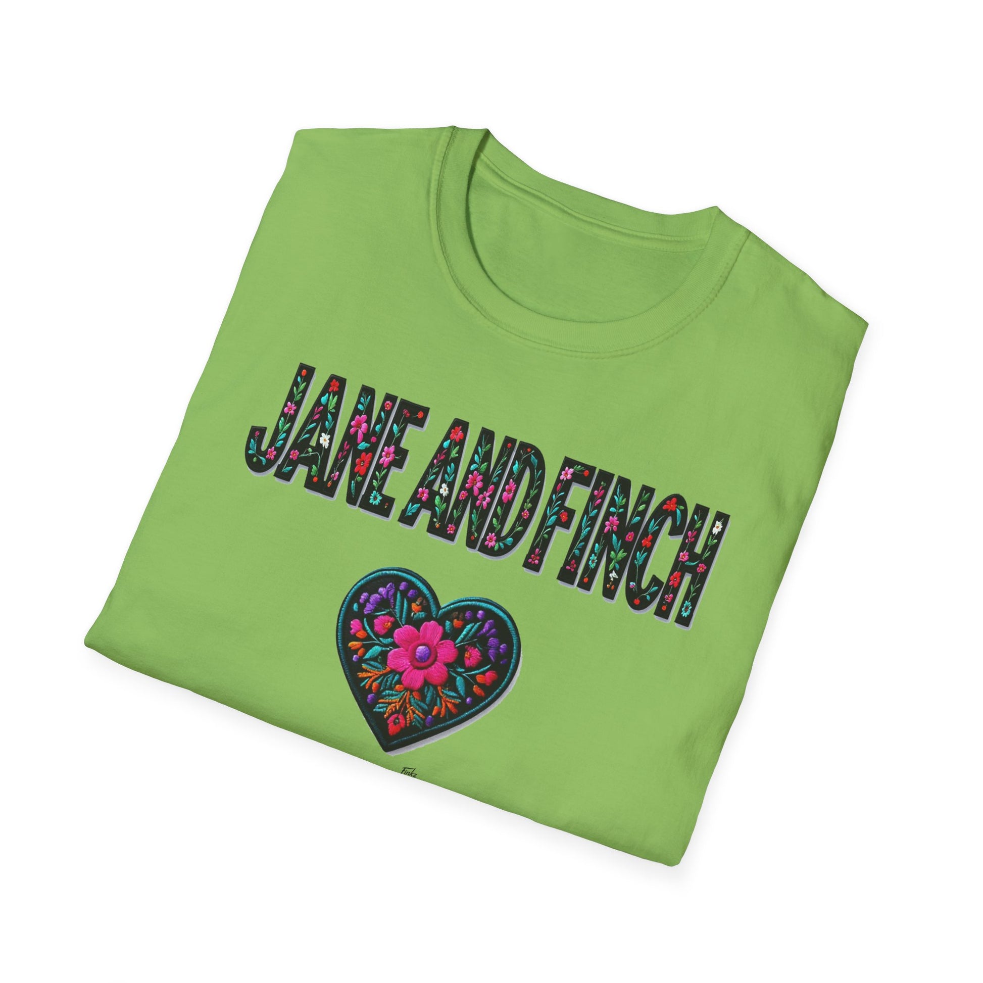 Jane & Finch Local Gal Flower-Heart T-Shirt, c06-n01-s005 Softstyle Graphic Tee, Unisex Casual Wear, Support Local Merch, Gift for Community Lovers, Finkz WINDSOR