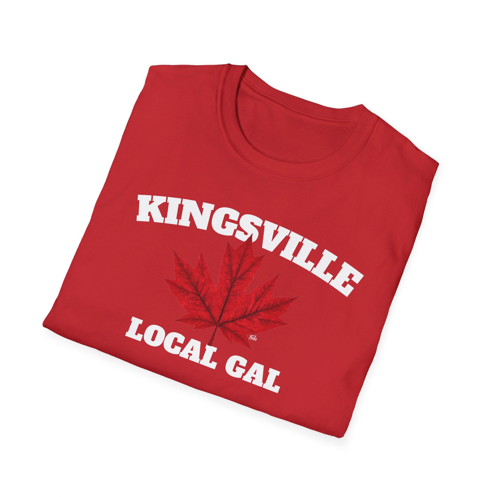 KINGSVILLE Local Gal Red Leaf T-Shirt, Softstyle Graphic Tee, Unisex Casual Wear, Support Local Merch, Gift for Community Lovers, Finkz Windsor