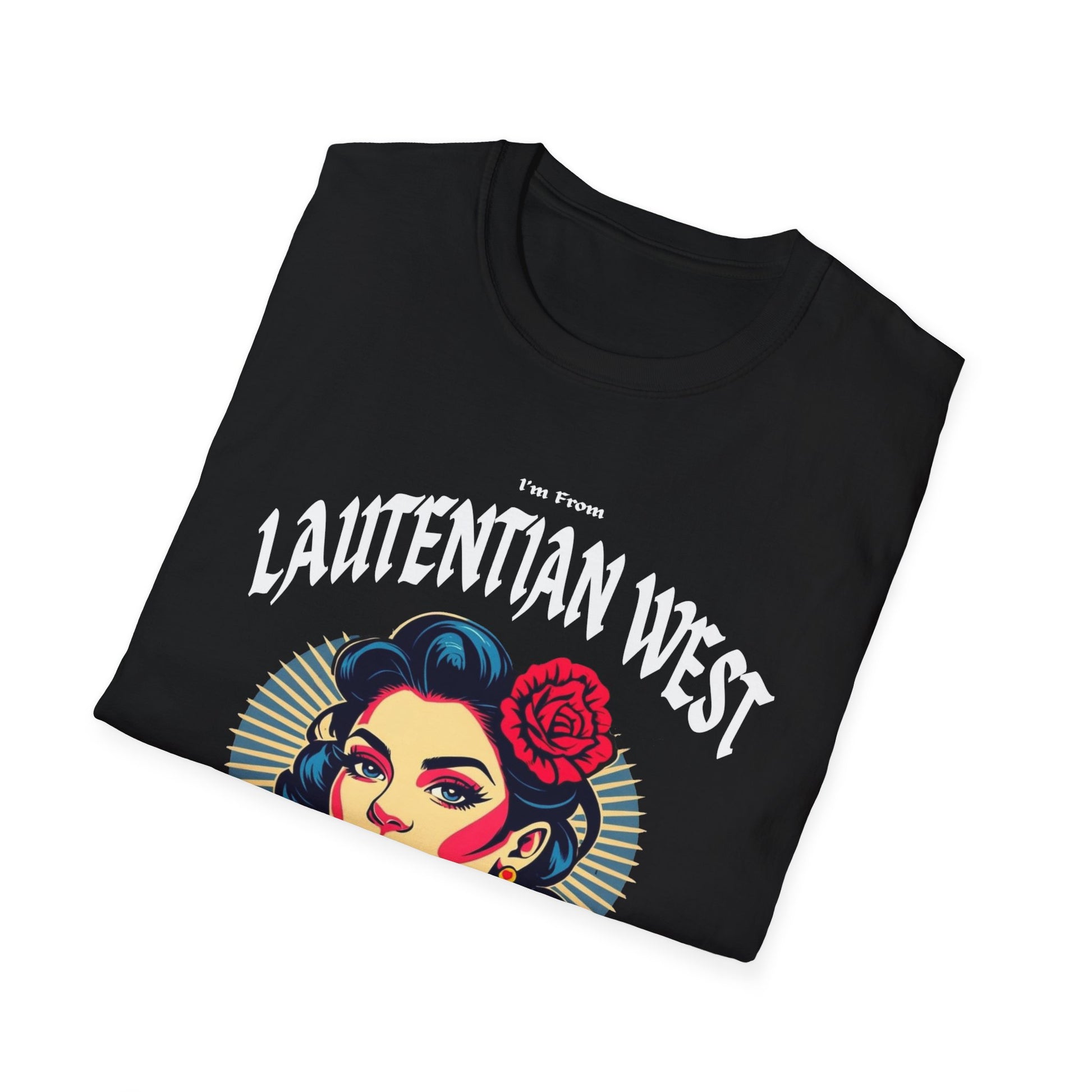 Laurentian West Underestimate Gal T-Shirt, c003-n07-s001 Softstyle Graphic Tee, Unisex Casual Wear, Support'n Locals Merch, Gift for Community Lovers.