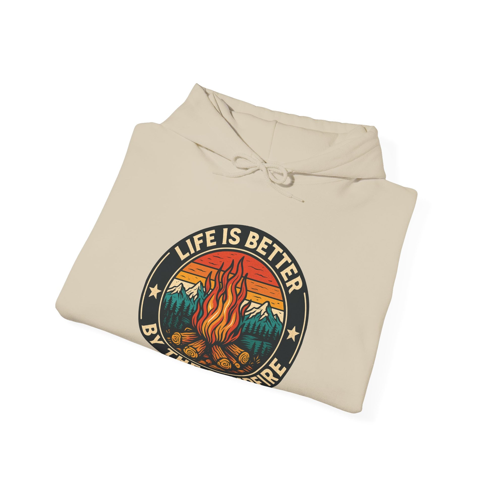 Life Is Better Around The Campfire Hoodie | HappyCamperCrew.Com 100% Authentic | Cozy Camping Hoodie | Unisex Hooded Sweatshirt for Nature Lovers, Casual Wear, Gift for Him/Her, Outdoor Adventures, Cozy Days & Warm Nights by the Campfire