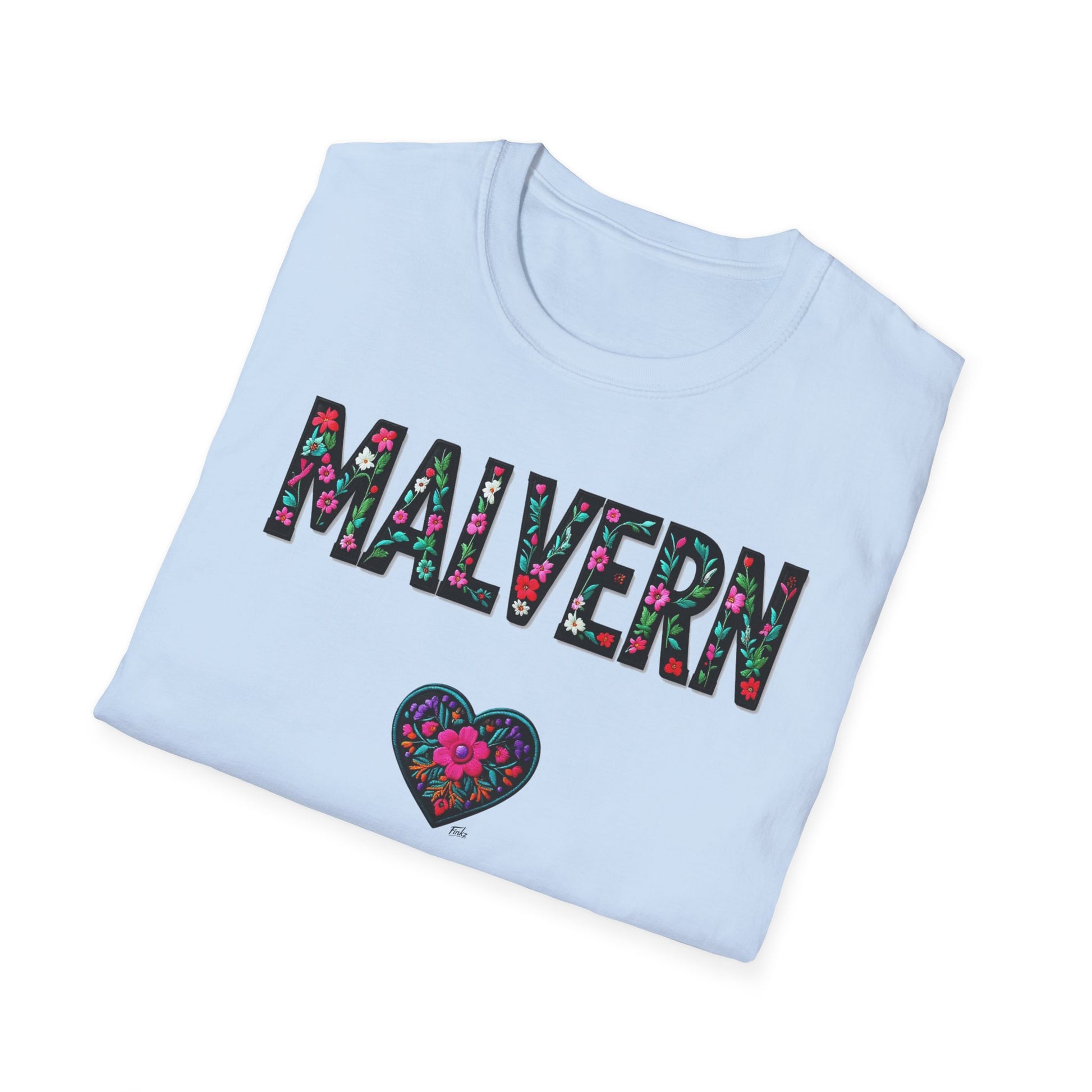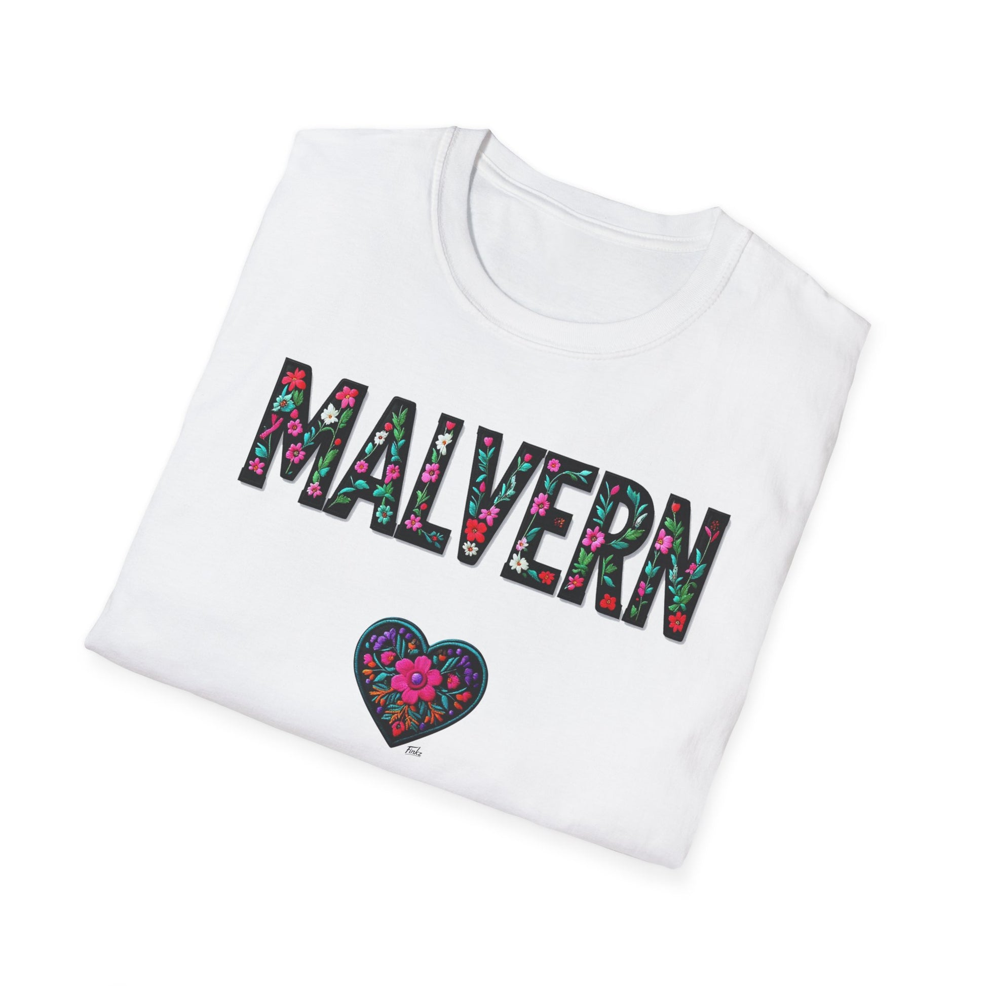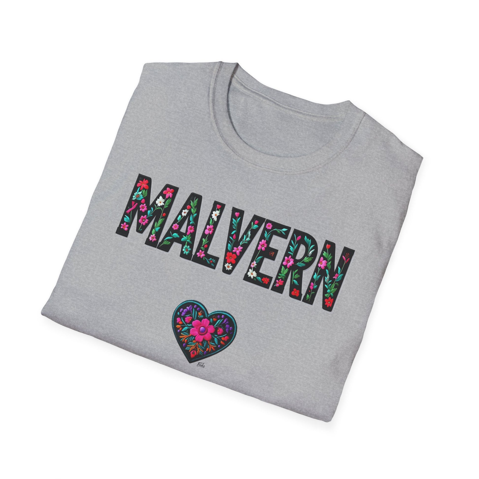 Malvern Local Gal Flower-Heart T-Shirt, c06-n04-s005 Softstyle Graphic Tee, Unisex Casual Wear, Support Local Merch, Gift for Community Lovers, Finkz WINDSOR