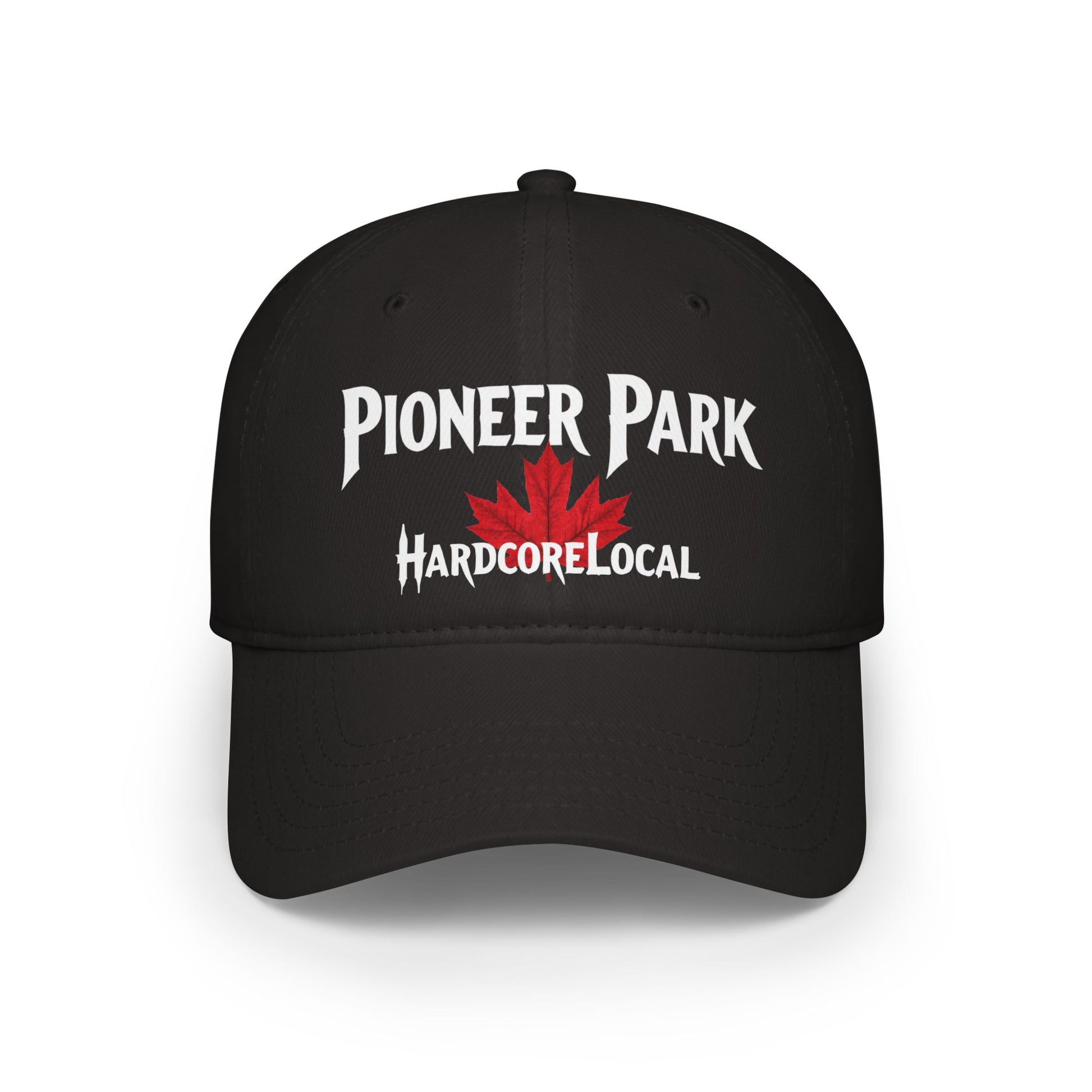 Pioneer Park HARDCORE LOCAL Red LEAF Low Profile Baseball Cap - Hat for Community Lovers