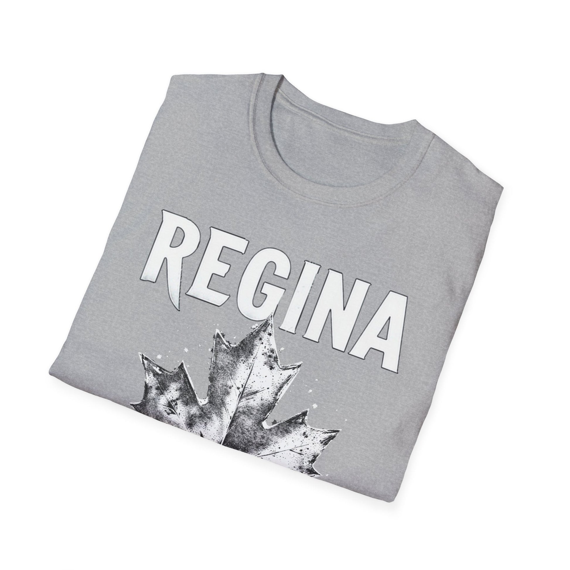Regina Hardcore Rep'n White Leaf T-Shirt, c010-n00-s007 Softstyle Graphic Tee, Unisex Casual Wear, Support'n Locals Merch, Gift for Community Lovers.