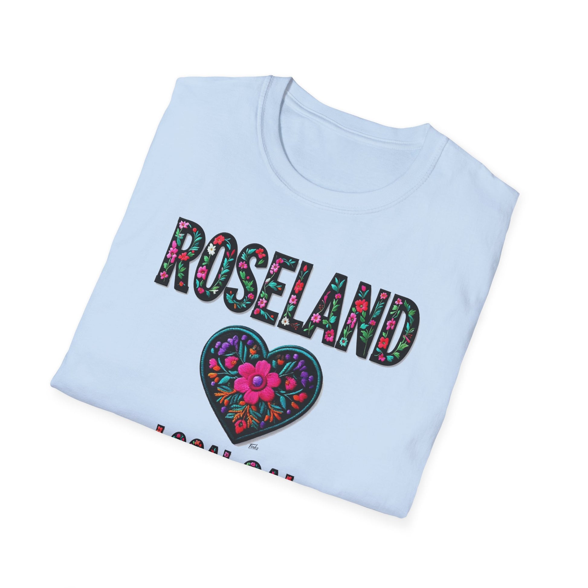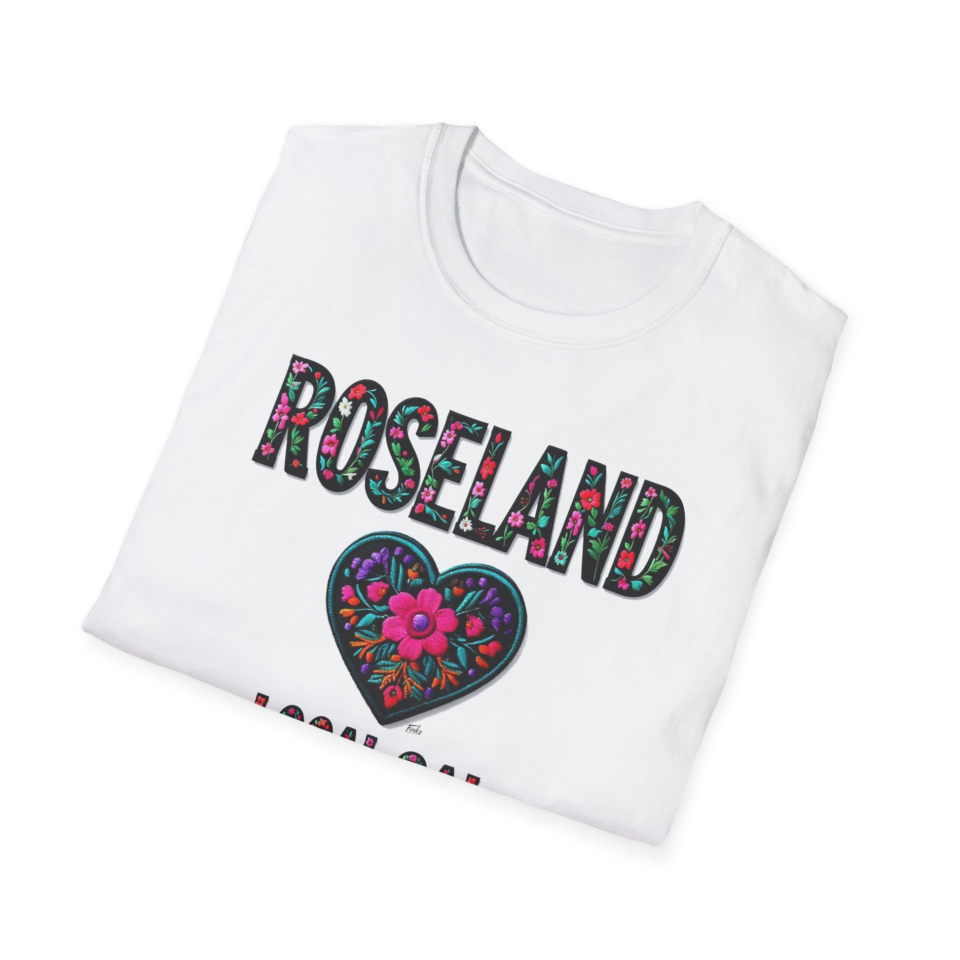 ROSELAND Local Gal Flower-Heart T-Shirt, 3 Softstyle Graphic Tee, Unisex Casual Wear, Support Local Merch, Gift for Community Lovers, Finkz WINDSOR