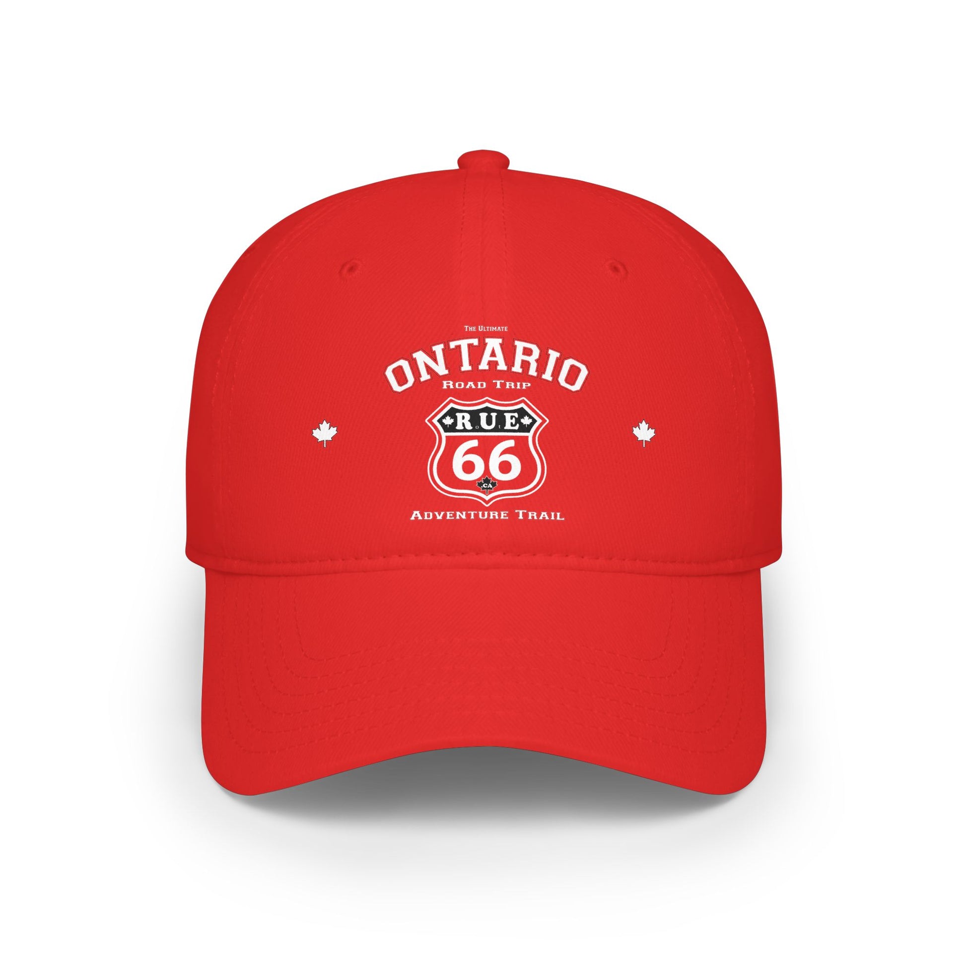 Rue 66 Ontario road trip Adventure Trail RED Low Profile Baseball Cap, Adjustable Hat,