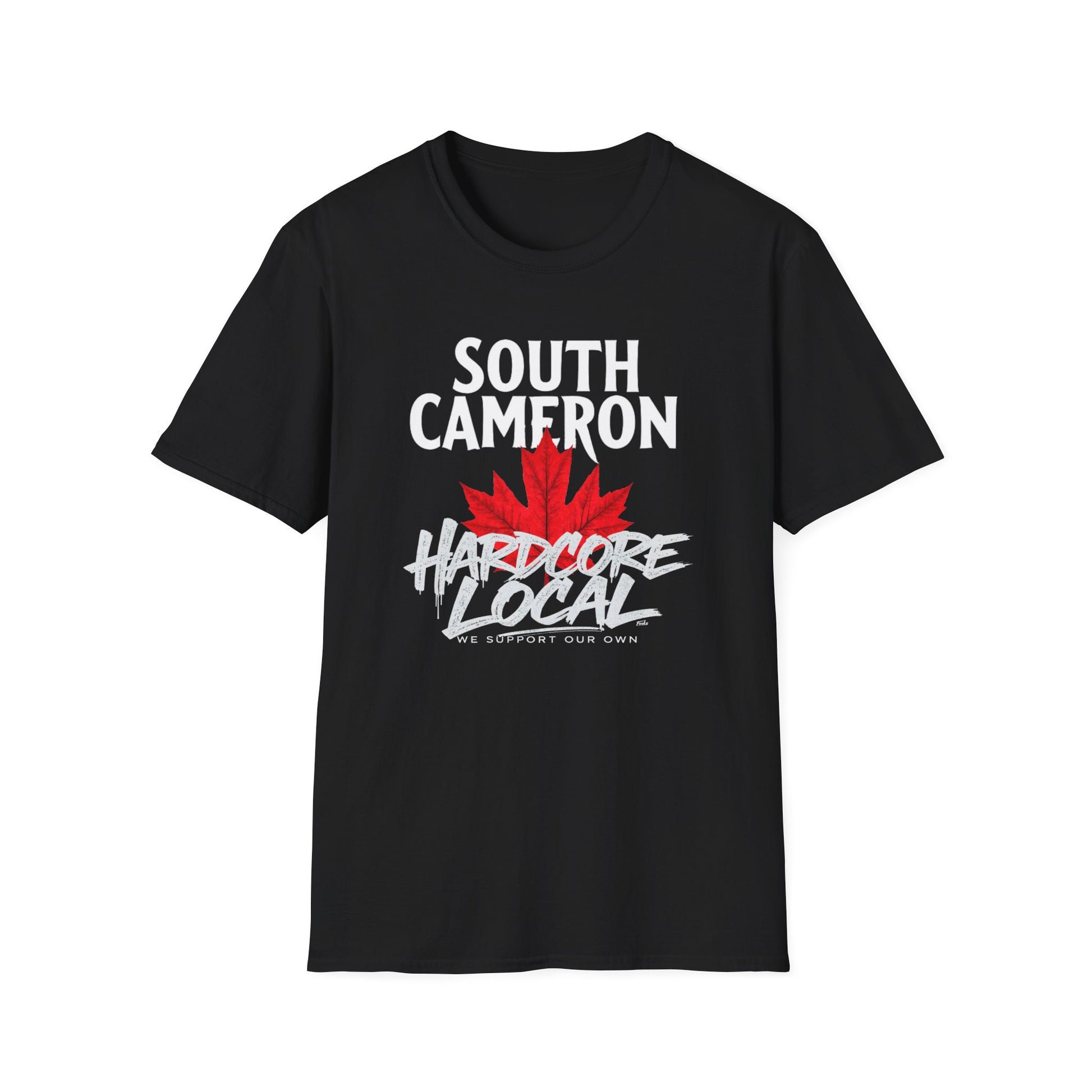 SOUTH CAMERON Hardcore Local, We Support Our Own, Red Leaf 3 T-Shirt, Softstyle Graphic Tee, Unisex Casual Wear, Support Local Merch, Gift for Community Lovers, FINKZ WINDSOR