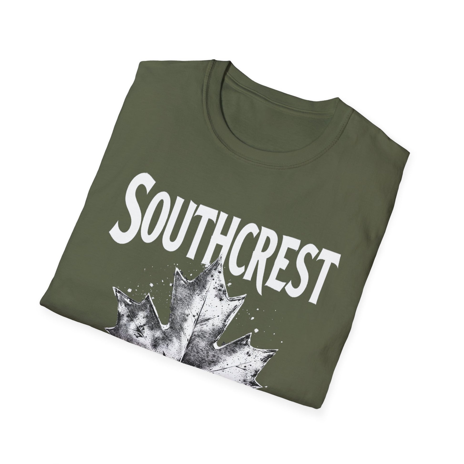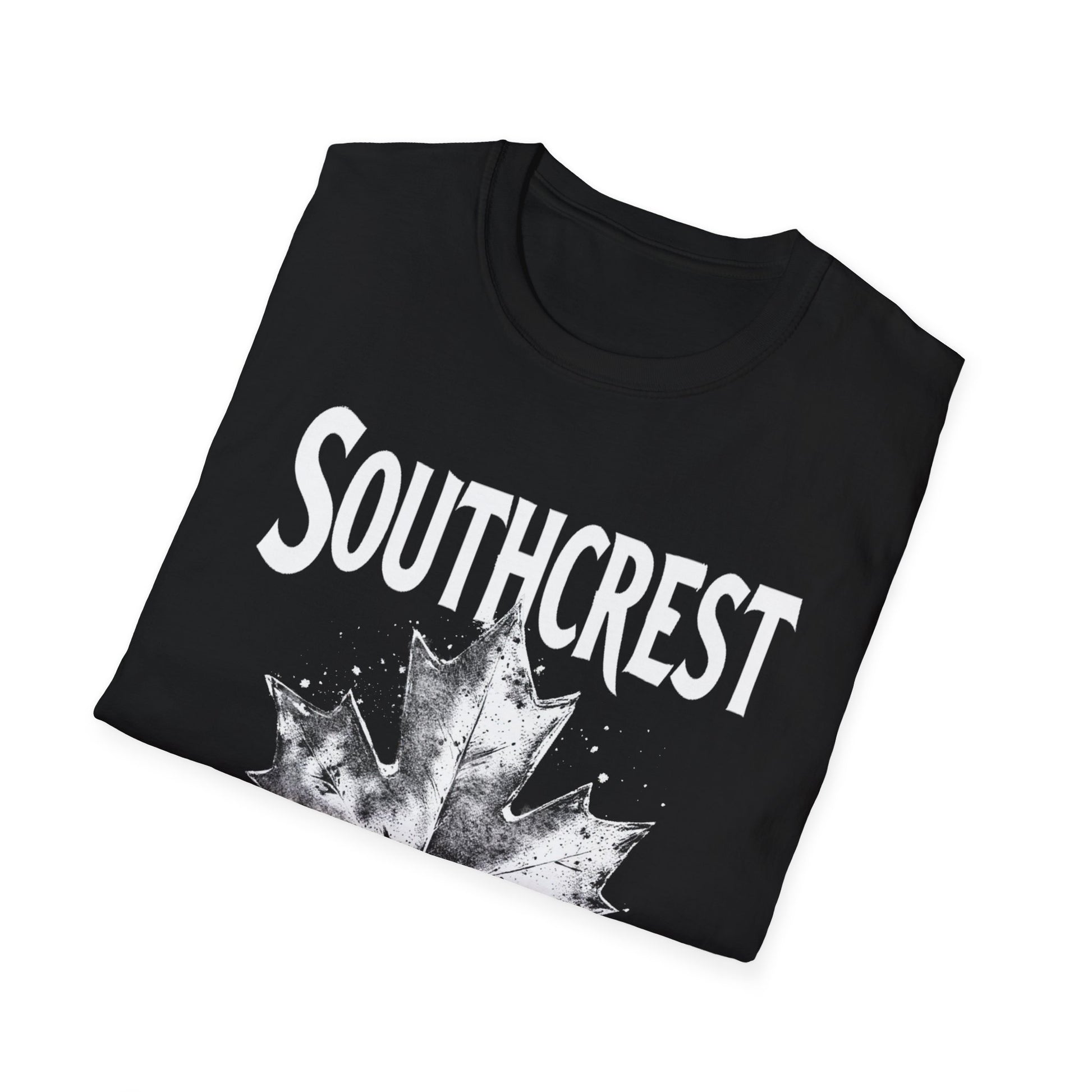 Southcrest Hardcore Rep'n White Leaf T-Shirt, c02-n07-s007 Softstyle Graphic Tee, Unisex Casual Wear, Support'n Locals Merch, Gift for Community Lovers.