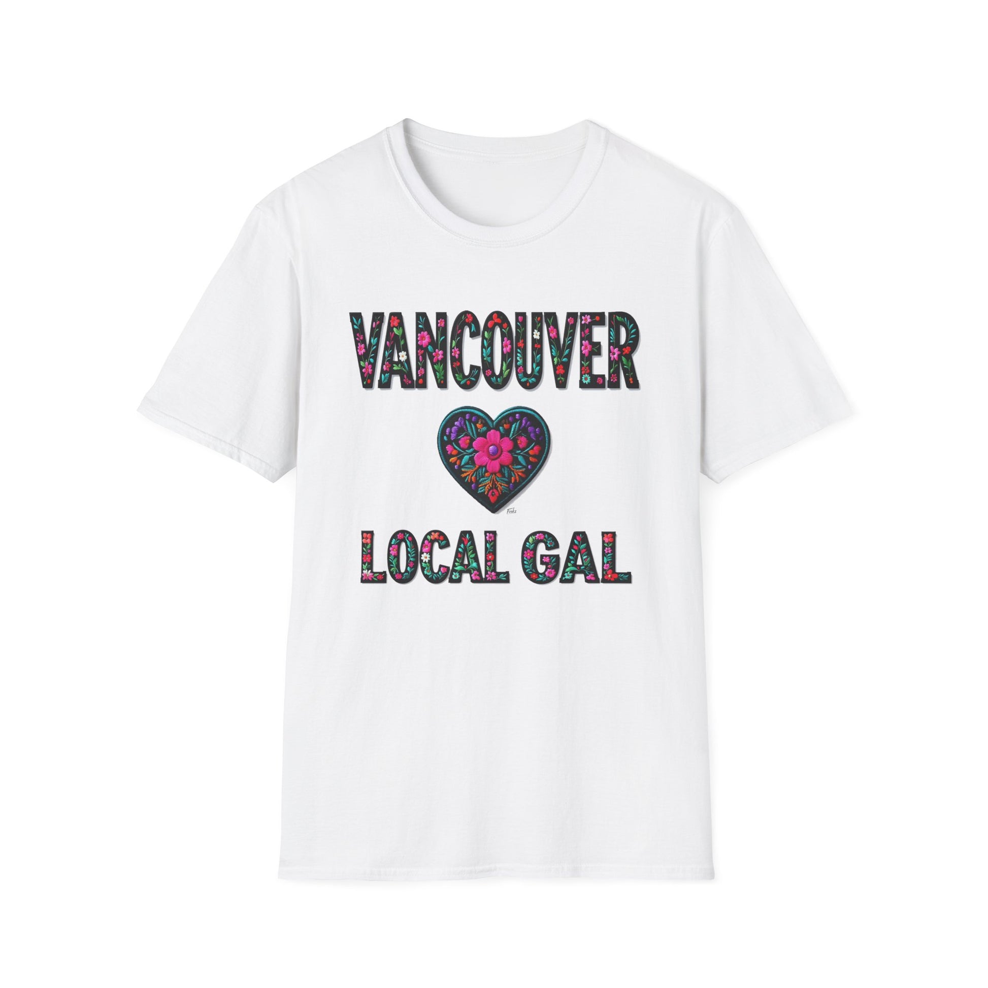 Vancouver Local Gal Flower-Heart T-Shirt, c13-n00-s005 Softstyle Graphic Tee, Unisex Casual Wear, Support Local Merch, Gift for Community Lovers, Finkz WINDSOR