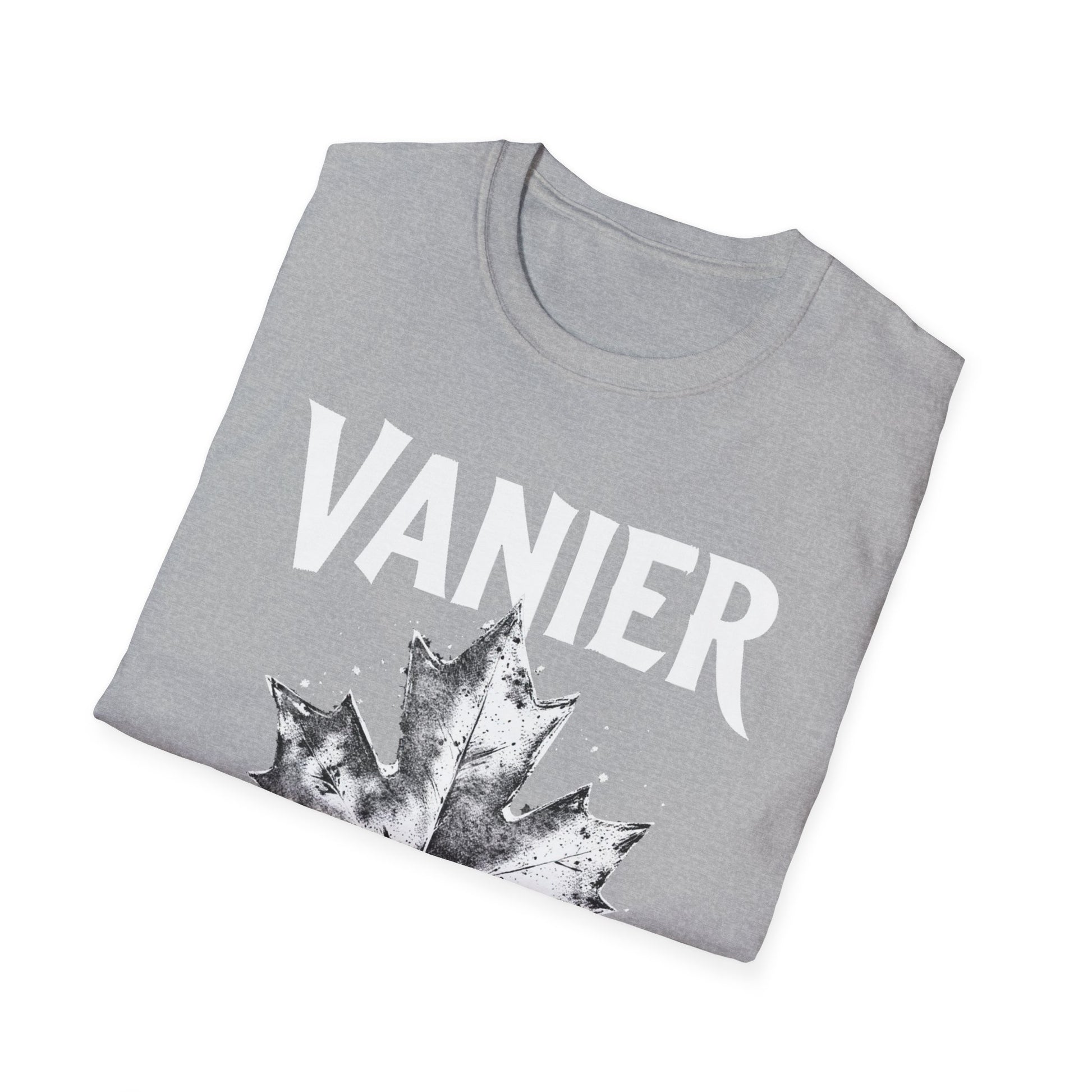 Vanier Hardcore Rep'n White Leaf T-Shirt, c03-n09-s007 Softstyle Graphic Tee, Unisex Casual Wear, Support'n Locals Merch, Gift for Community Lovers.