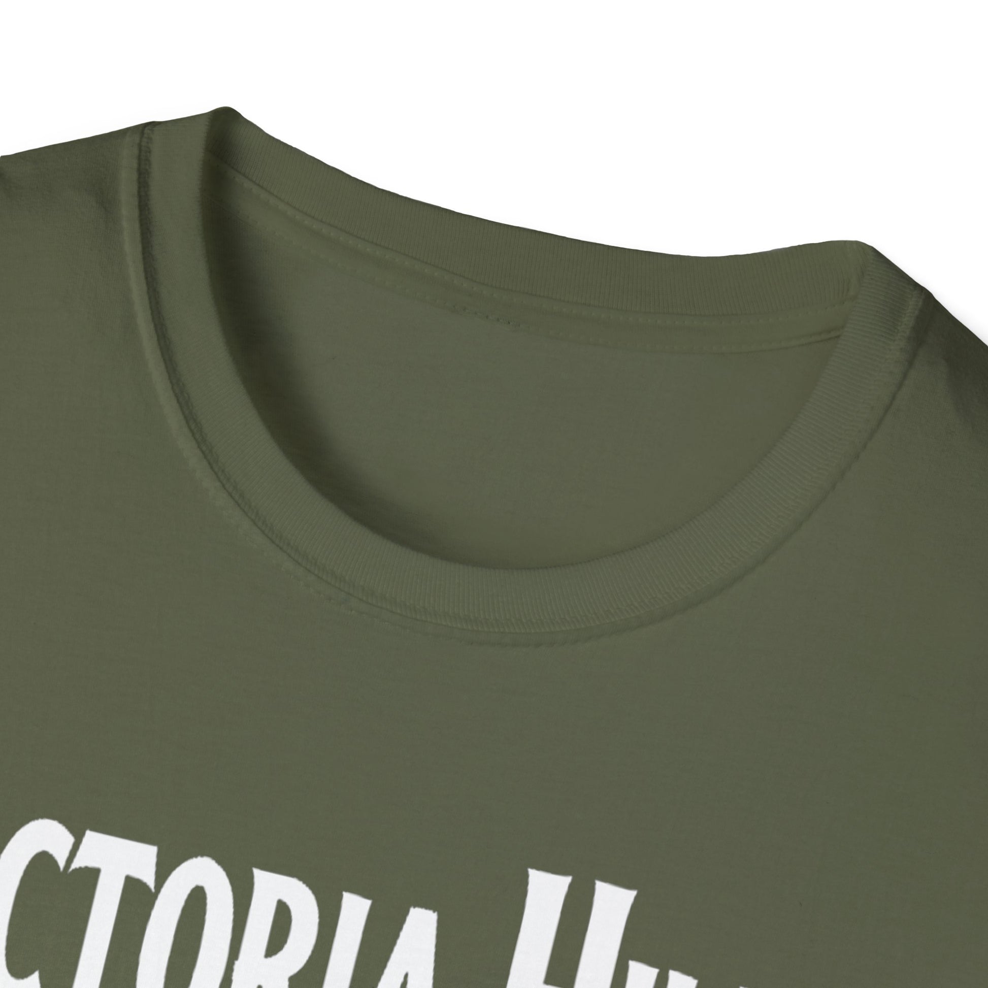Victoria Hills Hardcore Rep'n White Leaf T-Shirt, c03-n10-s007 Softstyle Graphic Tee, Unisex Casual Wear, Support'n Locals Merch, Gift for Community Lovers.