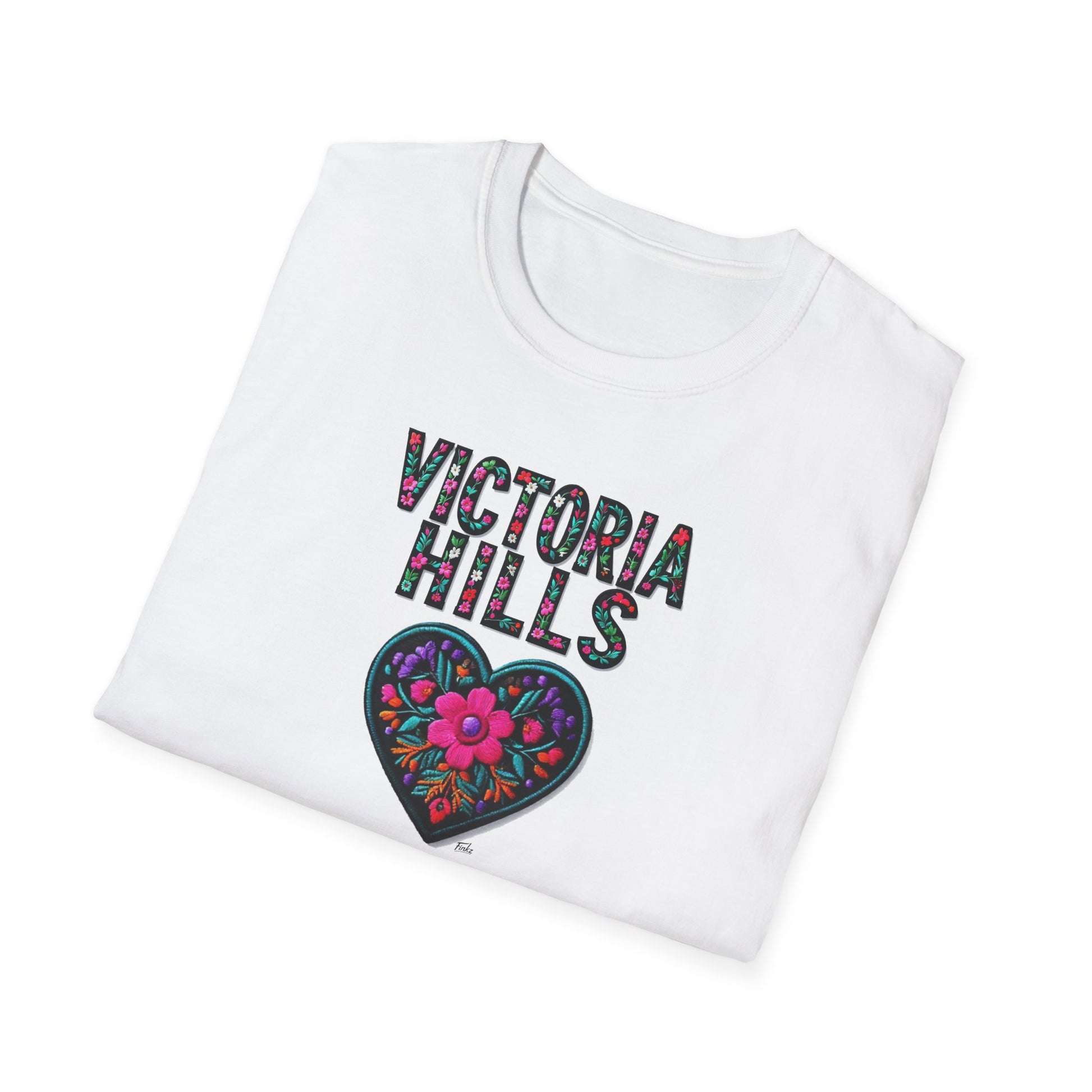 Victoria Hills Local Gal Flower-Heart T-Shirt, c03-n10-s05 Softstyle Graphic Tee, Unisex Casual Wear, Support Local Merch, Gift for Community Lovers, Finkz WINDSOR