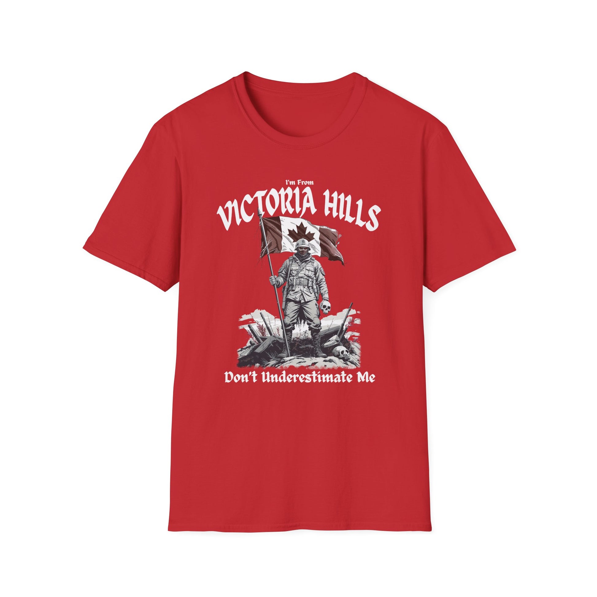 Victoria Hills Underestimate Guy T-Shirt, c03-n10-s002 Softstyle Graphic Tee, Unisex Casual Wear, Support'n Locals Merch, Gift for Community Lovers.