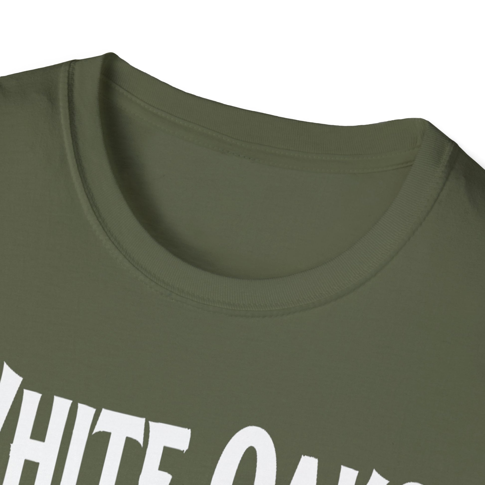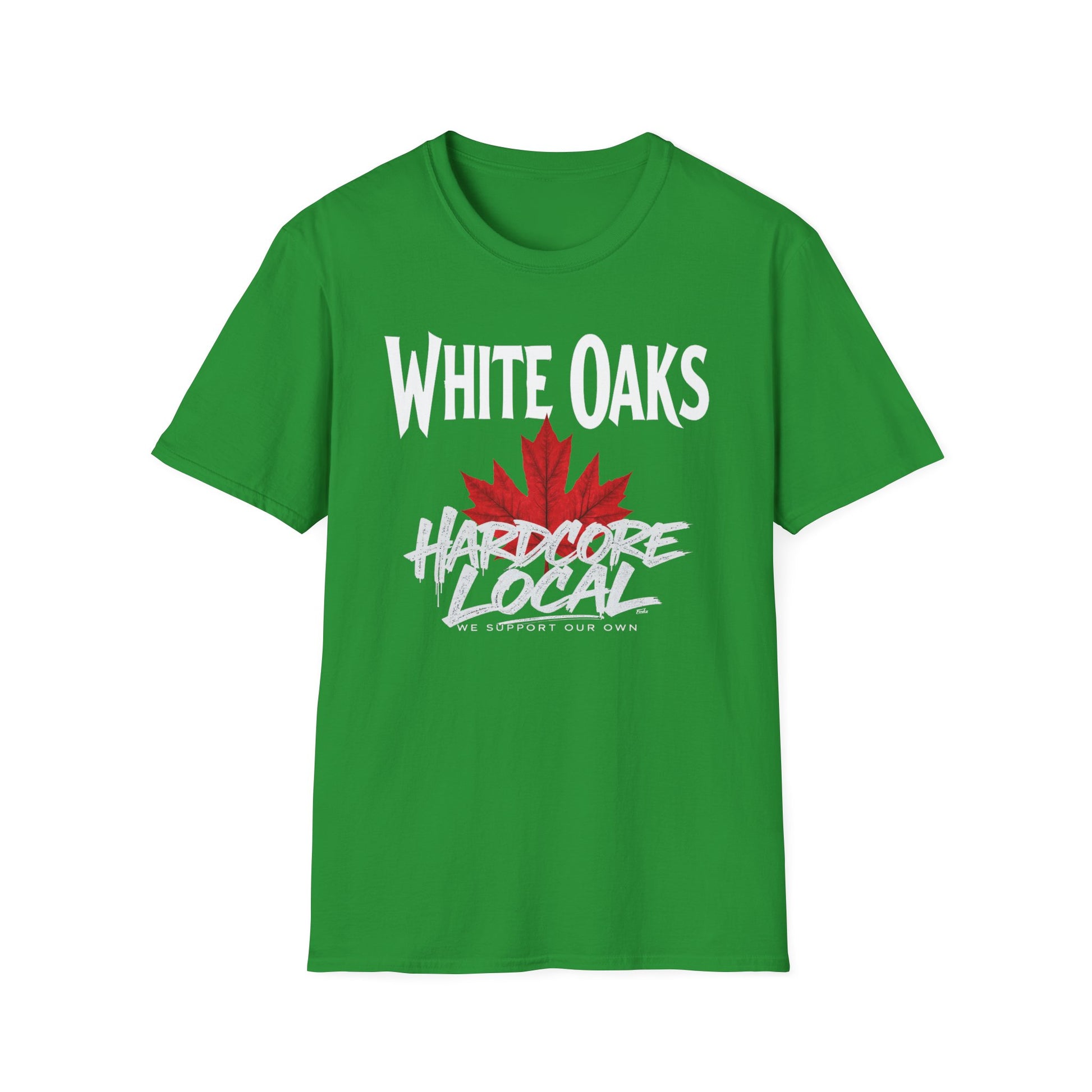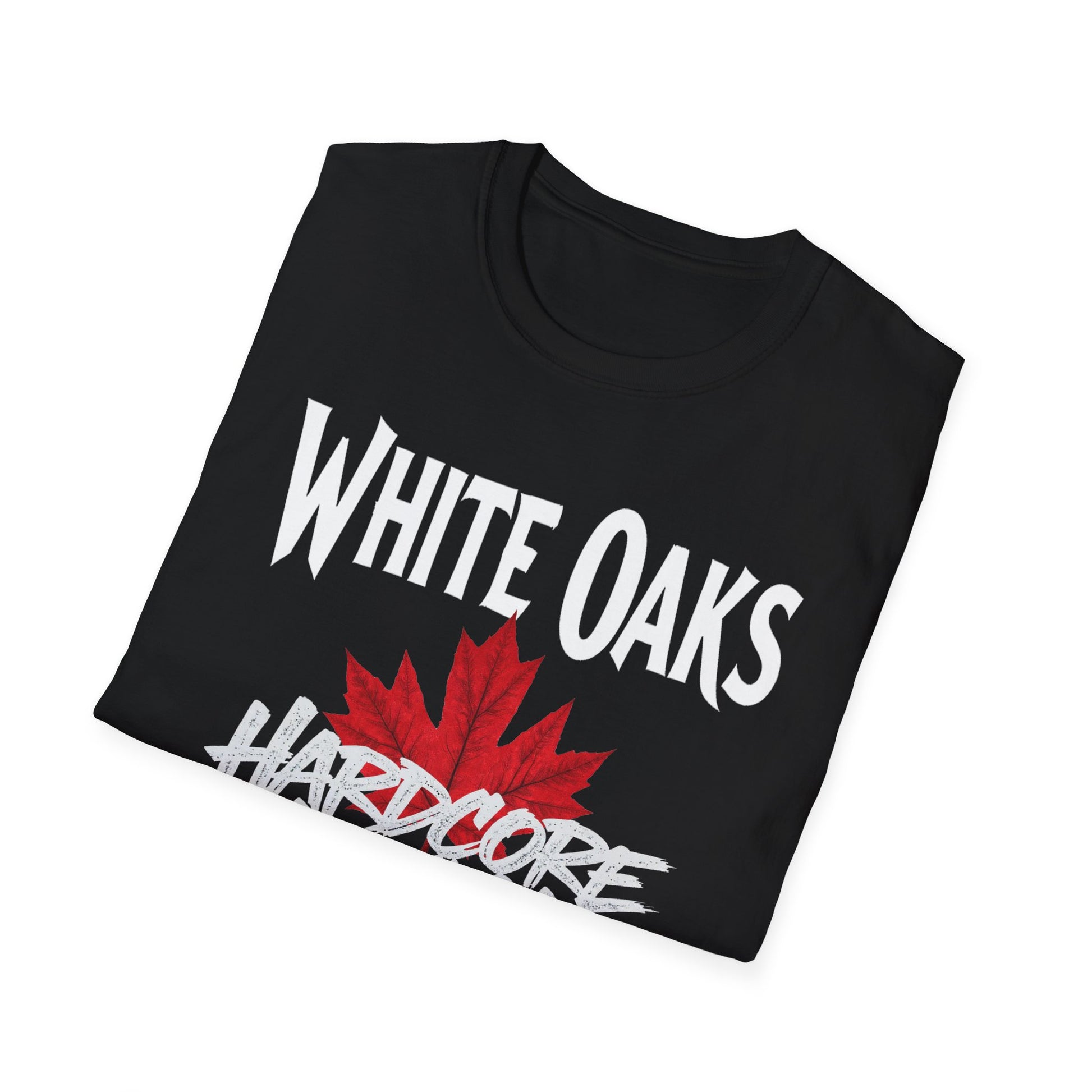 White Oaks Hardcore We Support Our Own Red Leaf T-Shirt, c02-n09-s006 Softstyle Graphic Tee, Unisex Casual Wear, Support'n Locals Merch, Gift for Community Lovers.
