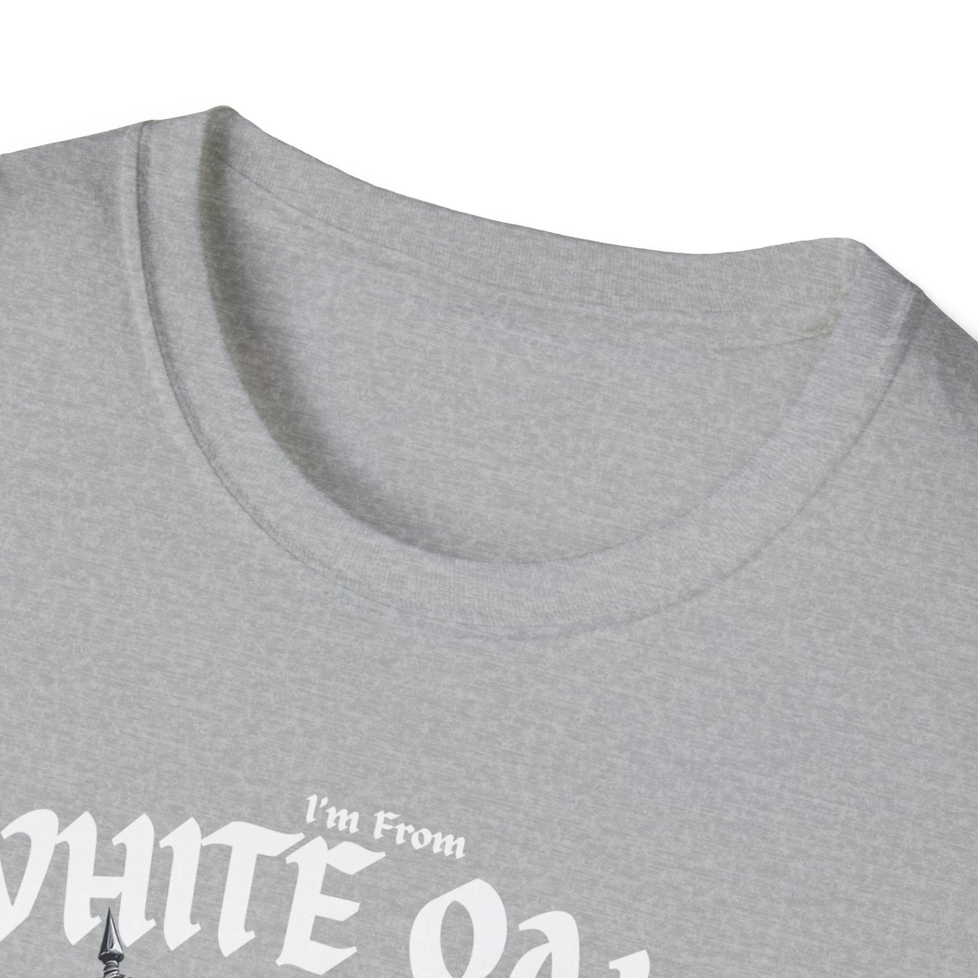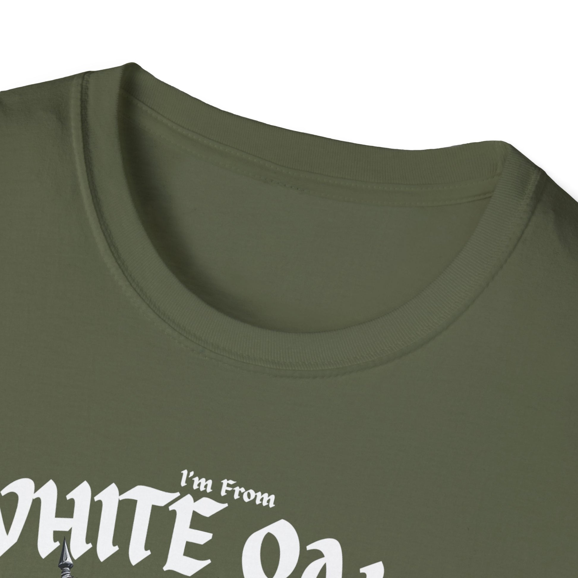 White Oaks Underestimate Guy T-Shirt, c02-n09-s002 Softstyle Graphic Tee, Unisex Casual Wear, Support'n Locals Merch, Gift for Community Lovers.